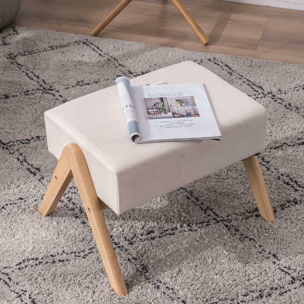 Fabric Rest Stool Wooden Footstool Chair Ottoman Rest Padded Top