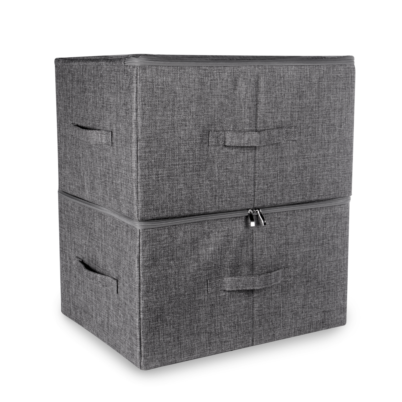 Fabric Storage Boxes with Zip Lid Set of 2 Bathroom & Office Organisation Pukkr