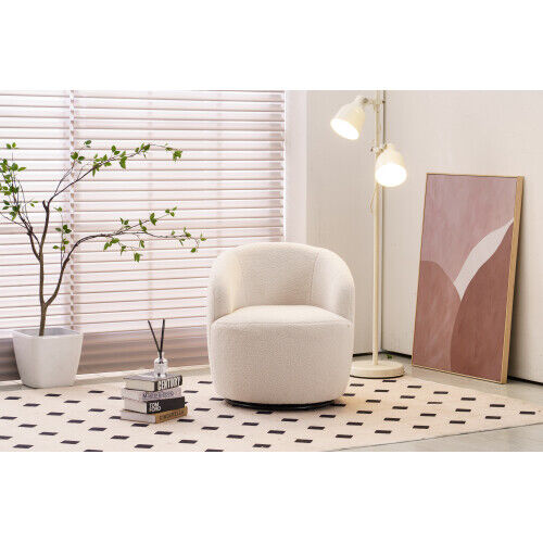 Fabric Swivel Accent Armchair Black Powder Coating 360° Swivel Barrel Chair QW