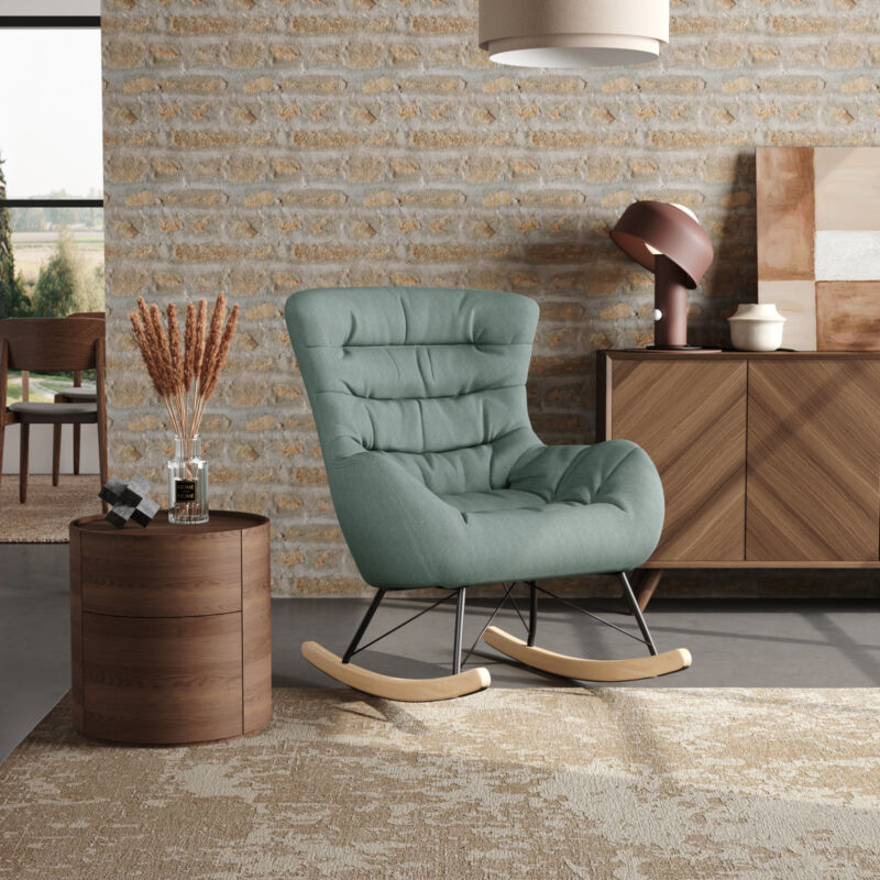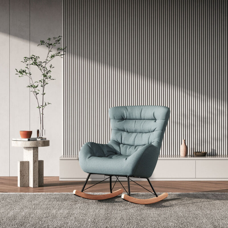 Fabric Upholstered Wing Back Lazy Rocking Chair Fireside Bedroom Lounge Armchair