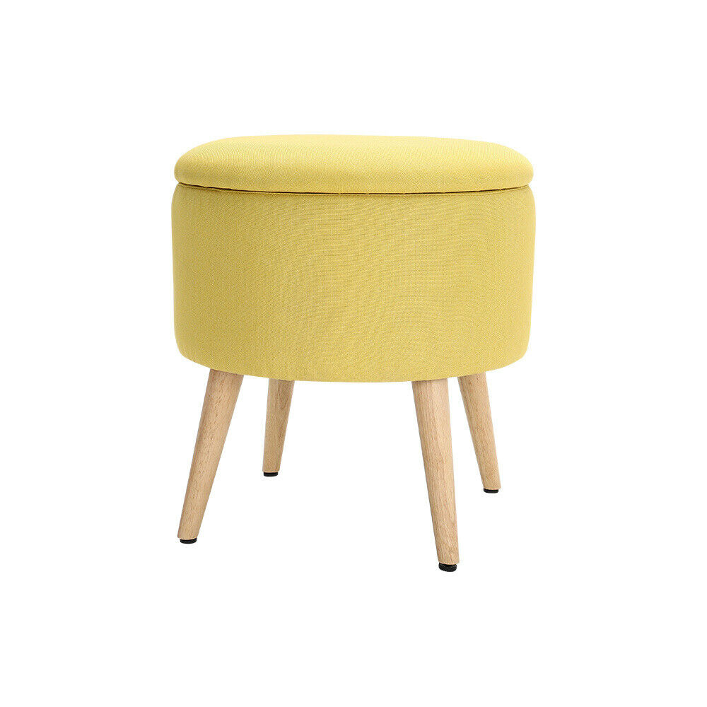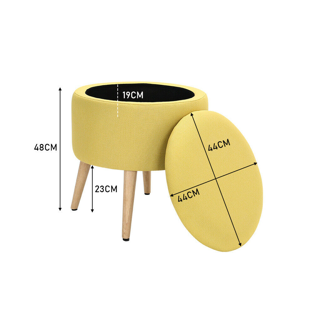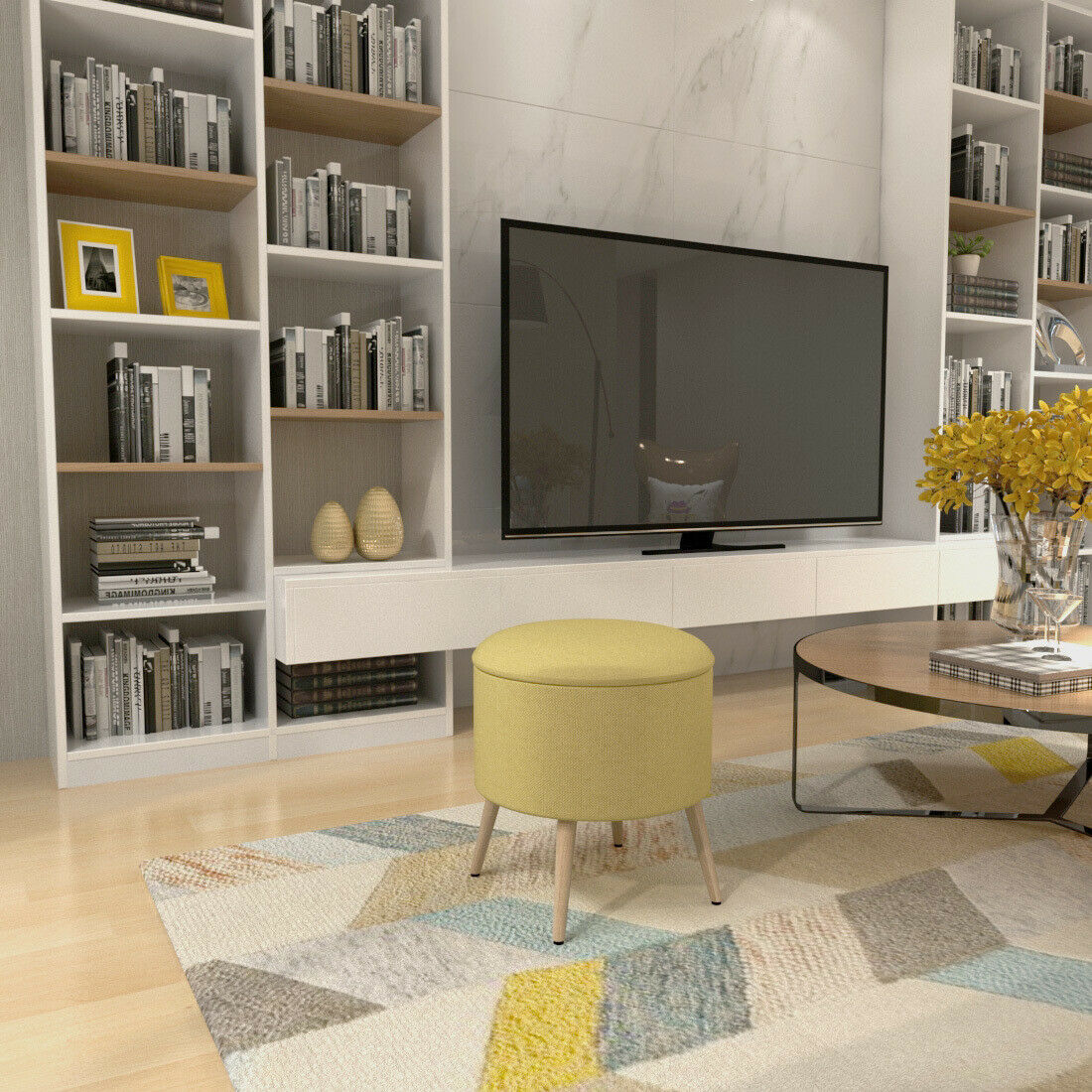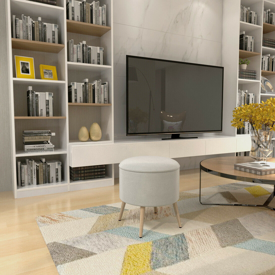 Fabric Upholstery Storage Ottoman Stool Pouffe Seat Round Vanity Chair Footstool