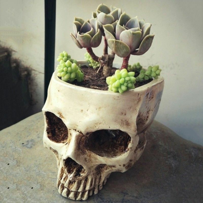 Fancy Realistic Human Skull Greenery Pot Flower Vase Candy Bowl Home Bar Decor