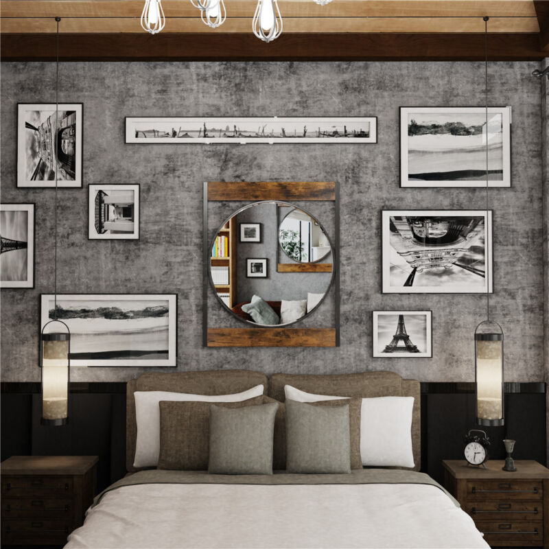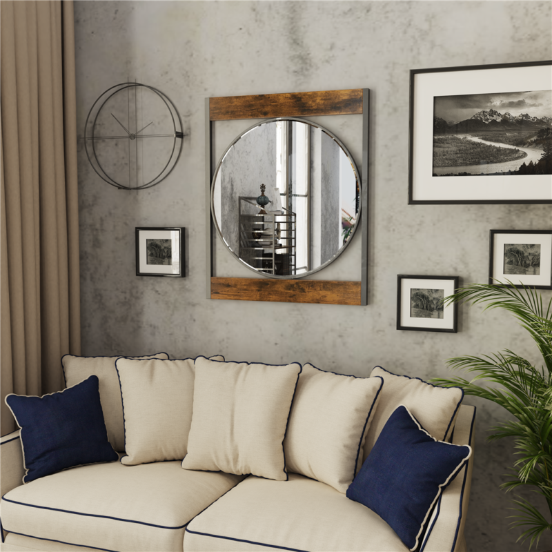 Farmhouse Wall Mirror Round Bathroom Vanity Square Frame Accent Bedroom Mirror