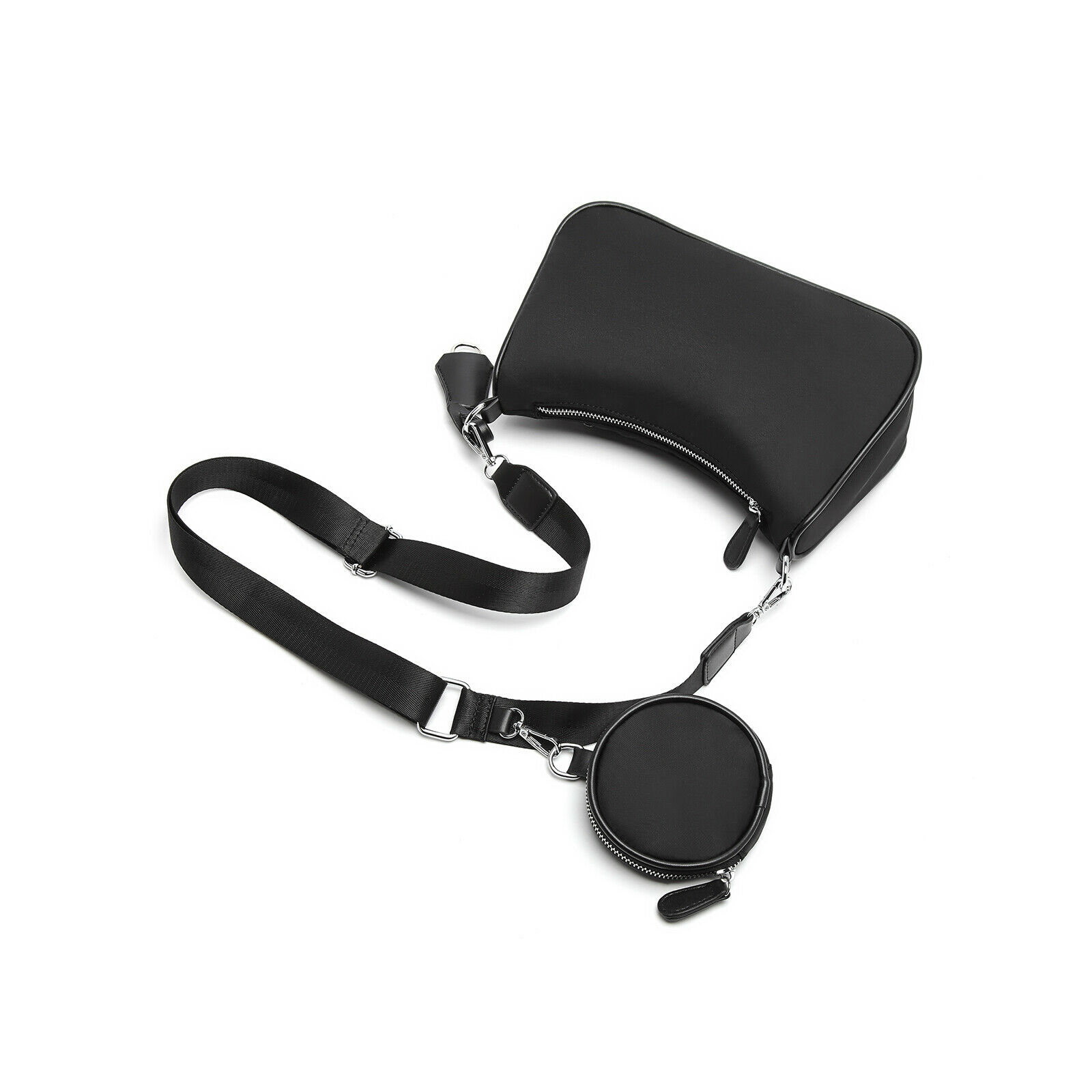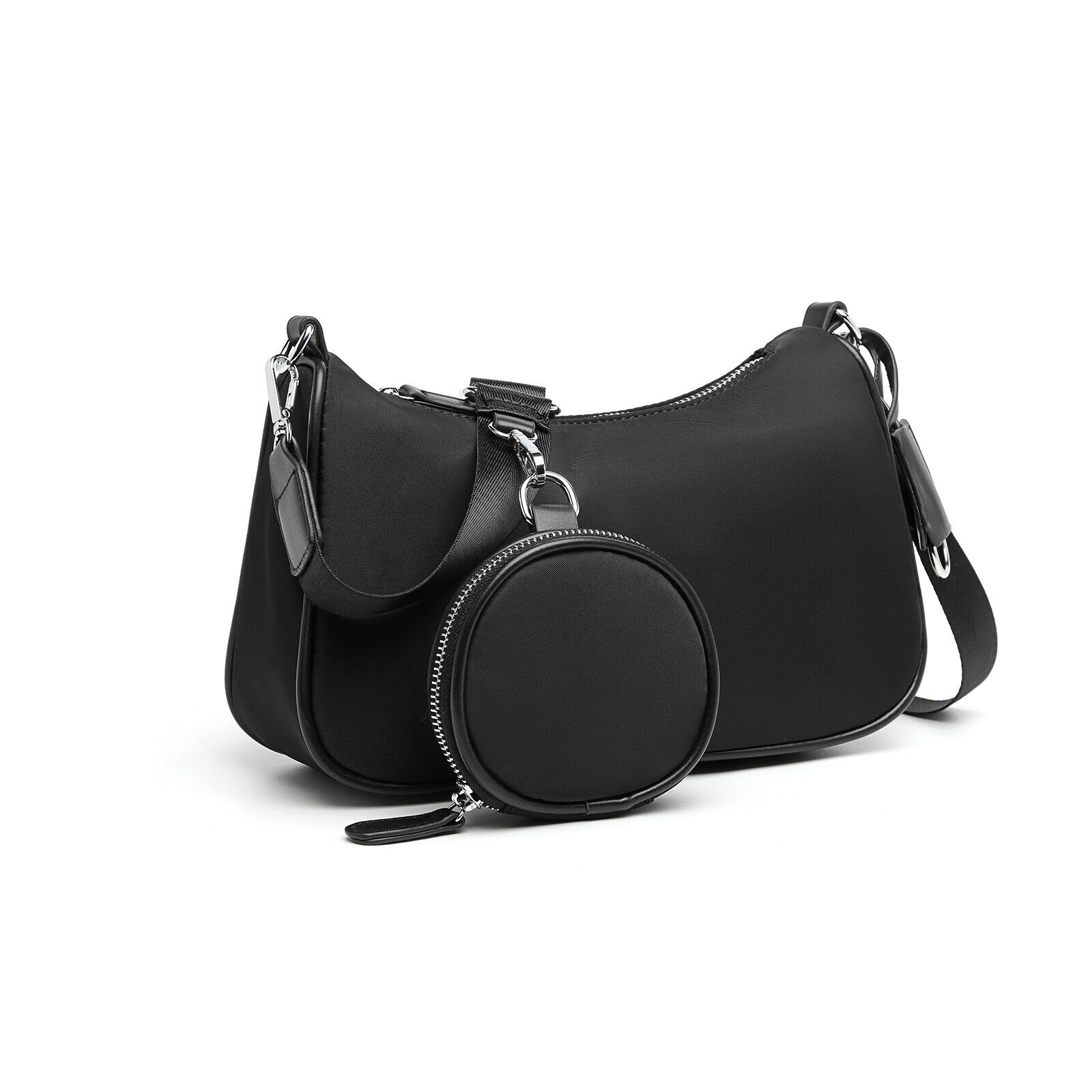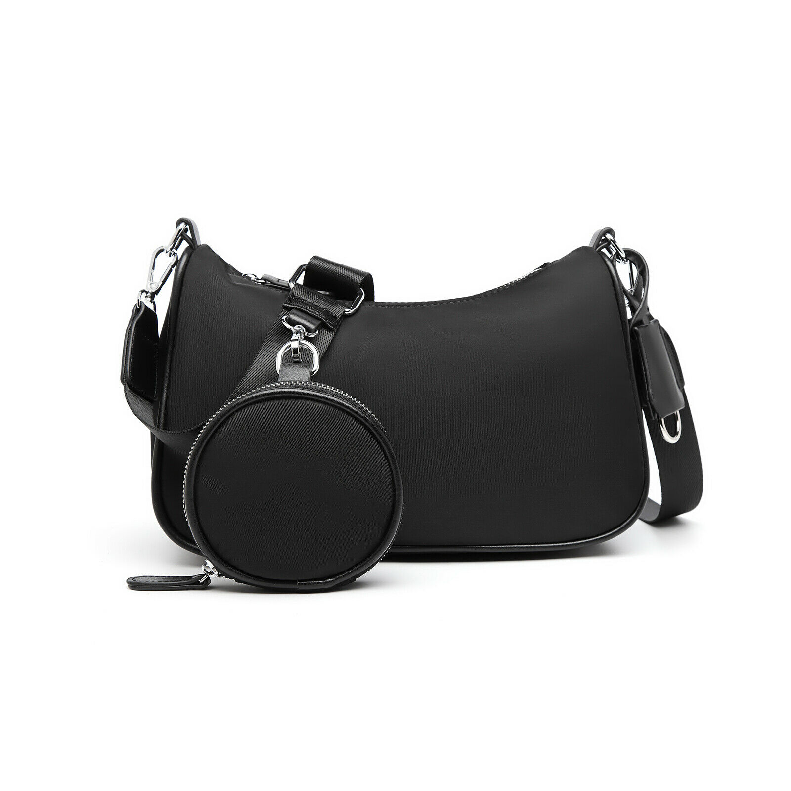 Fashion Ladies Nylon Handbag With Detachable Pouch Women Shoulder Cross Body Bag