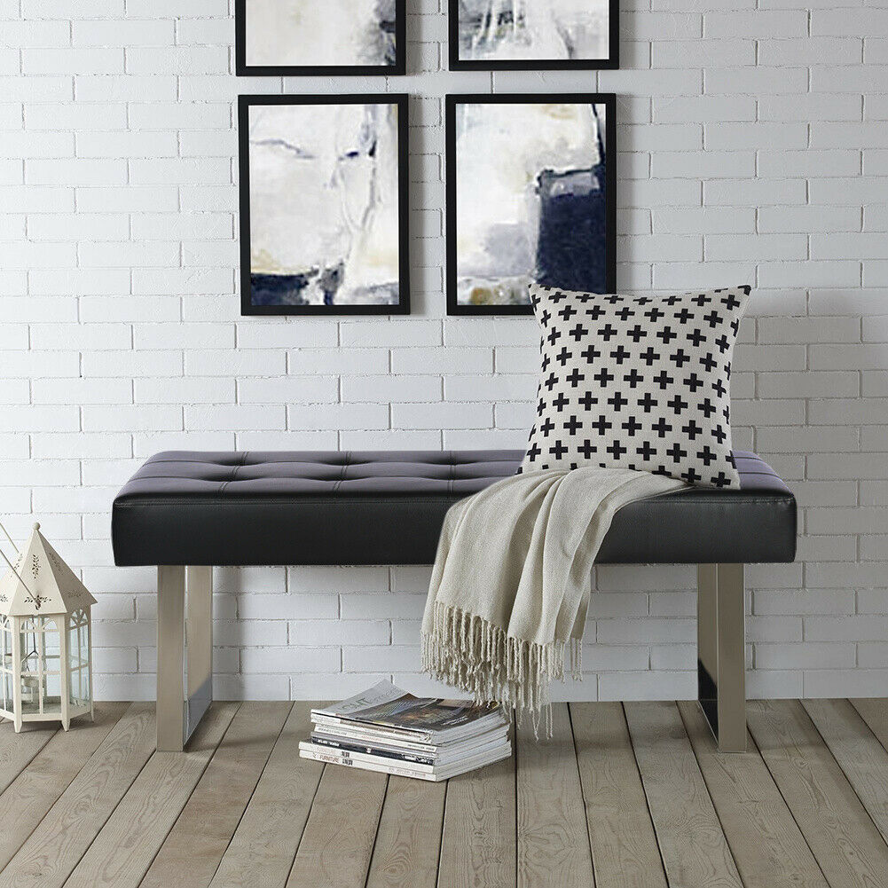 Faux Leather Long Window Seat Dining Bench Footstool Button Pouffe Hallway Stool