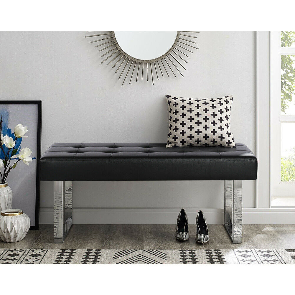 Faux Leather Multi-function Dining Bench Long Seat Chair Black Lounge Stool Home