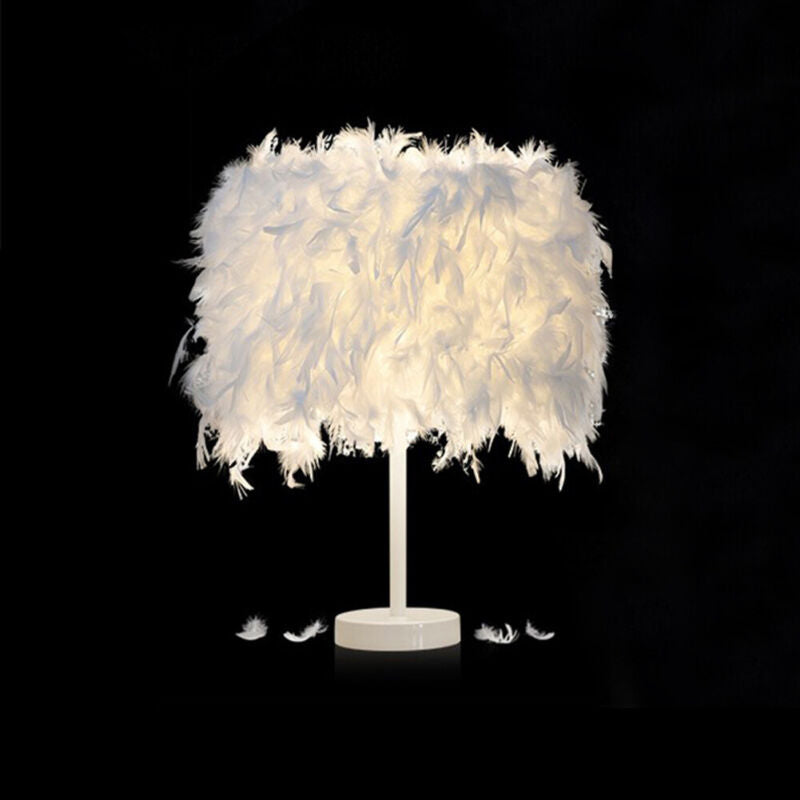 Feather Table Lamp Bedside Light Lampshade Reading Bedroom Shade Night Lamps LED