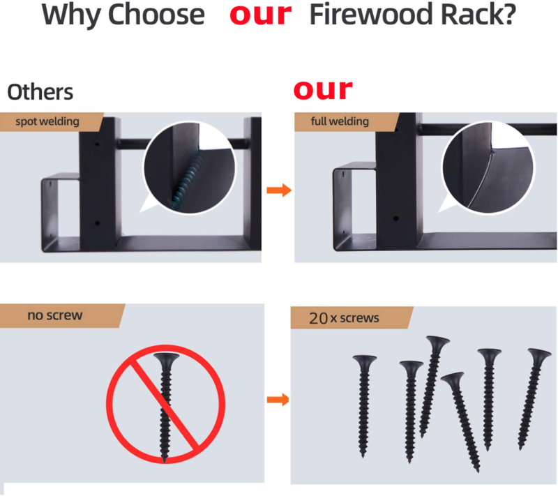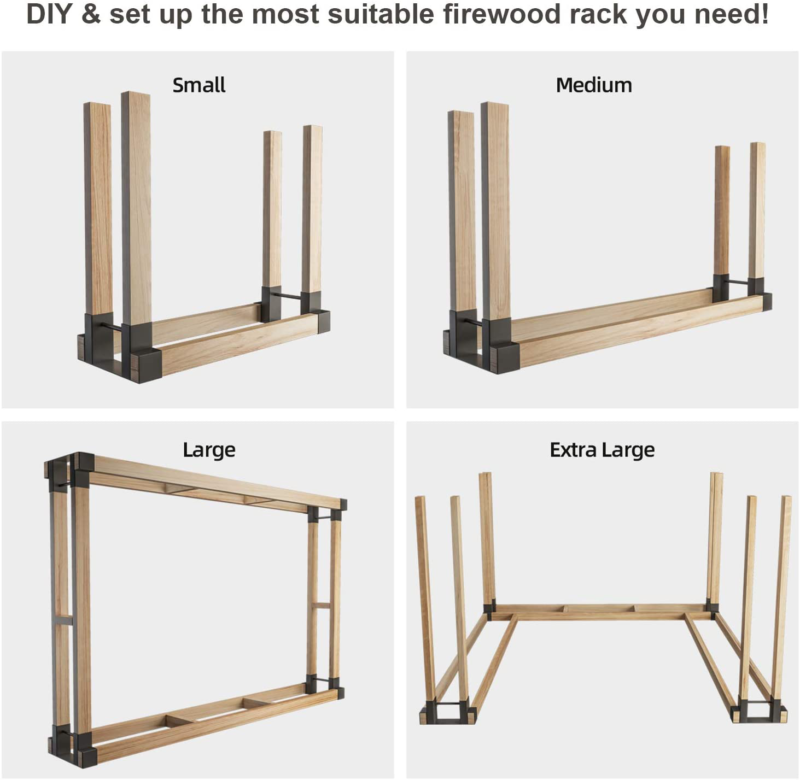 Fireplace Black DIY Firewood Logwood Rack Storage Holder Metal Shelf Stand Steel