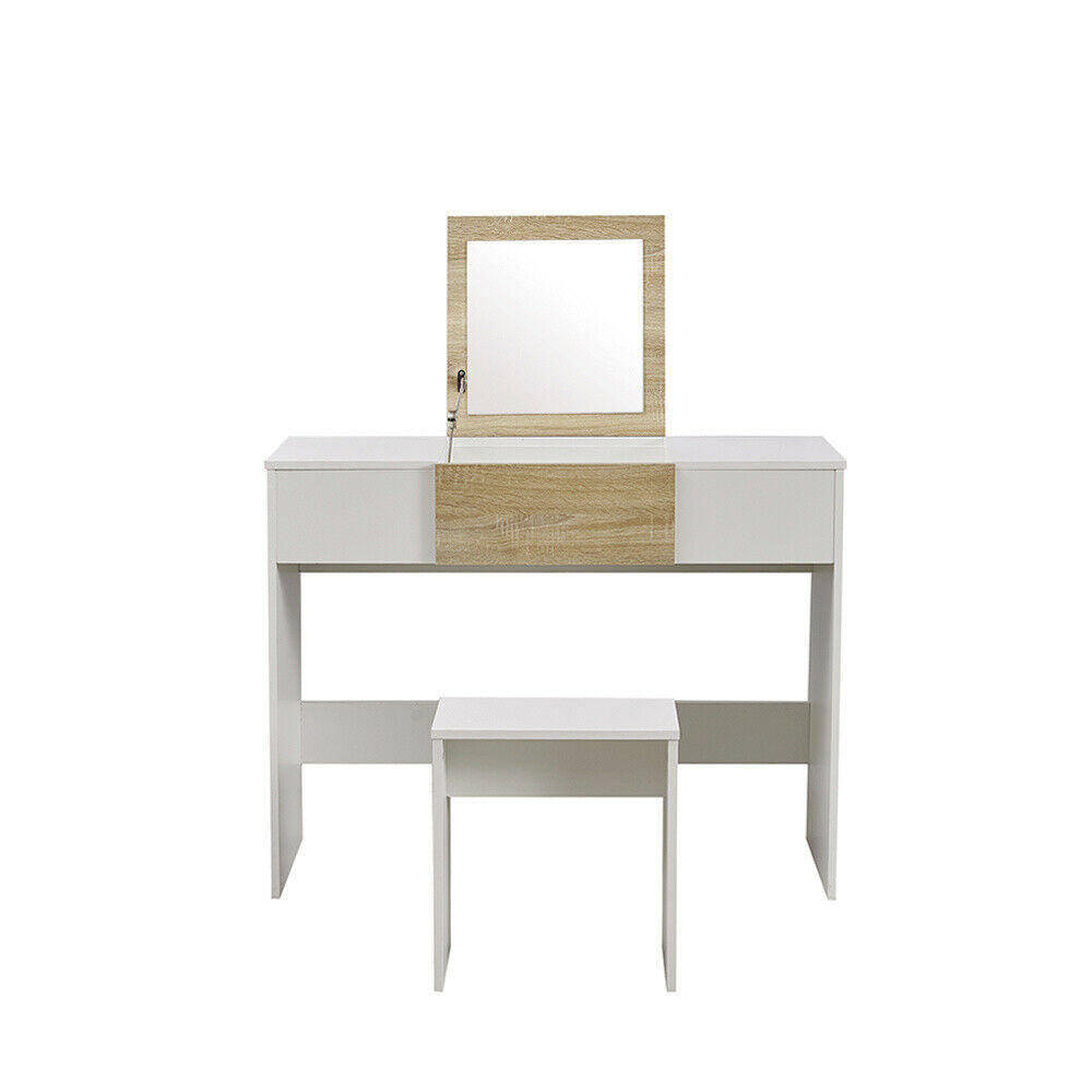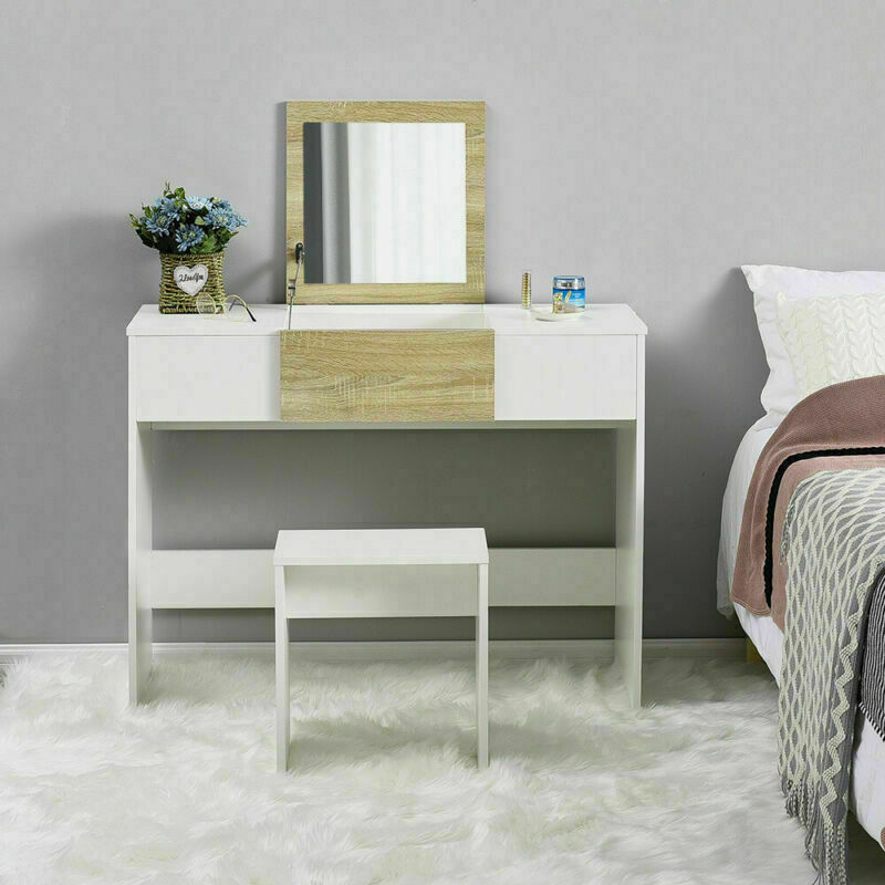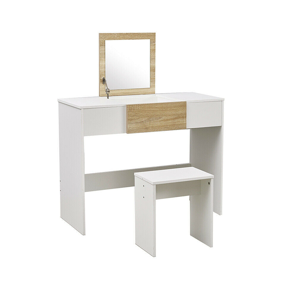 Flip-up Mirror Jewelry Storage Dressing Table Desk Stool Set Bedroom Furniture