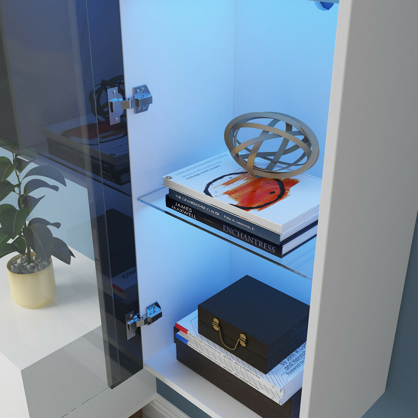 Floating Living Room Display Shelves Wall Shelf Boocase High-gloss LED Light UK