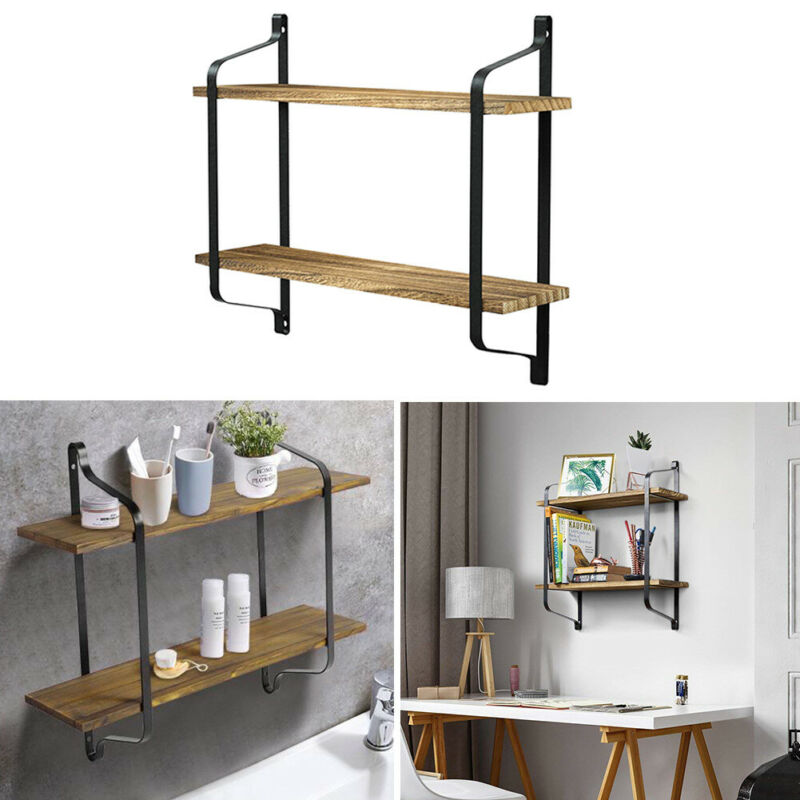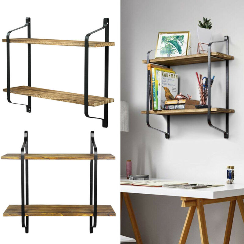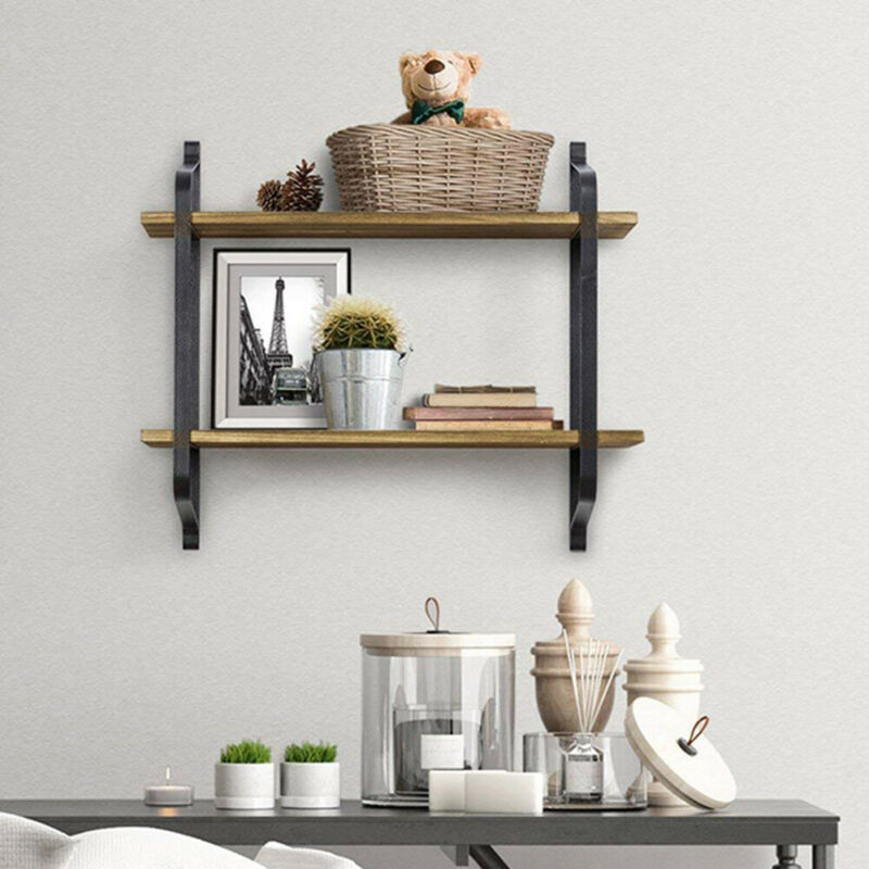 Floating Shelves Metal Wall Shelf Retro Industrial Hanging Wood Shelving Rack