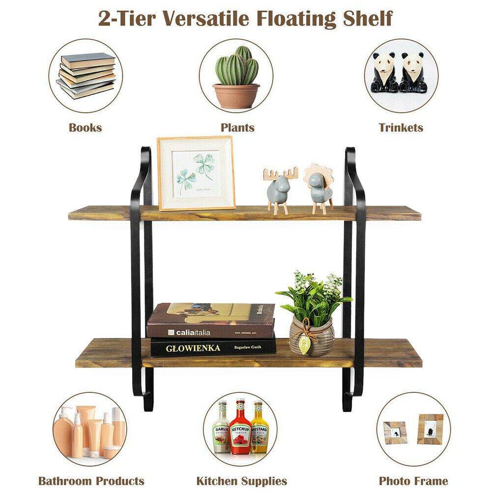 Floating Wall Shelves Rustic Wood Shelf Metal Hanging Storage Rack Shelving Unit