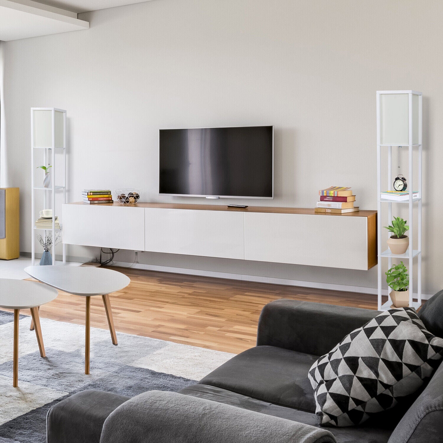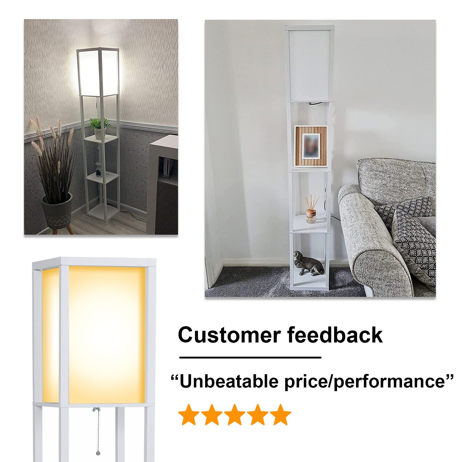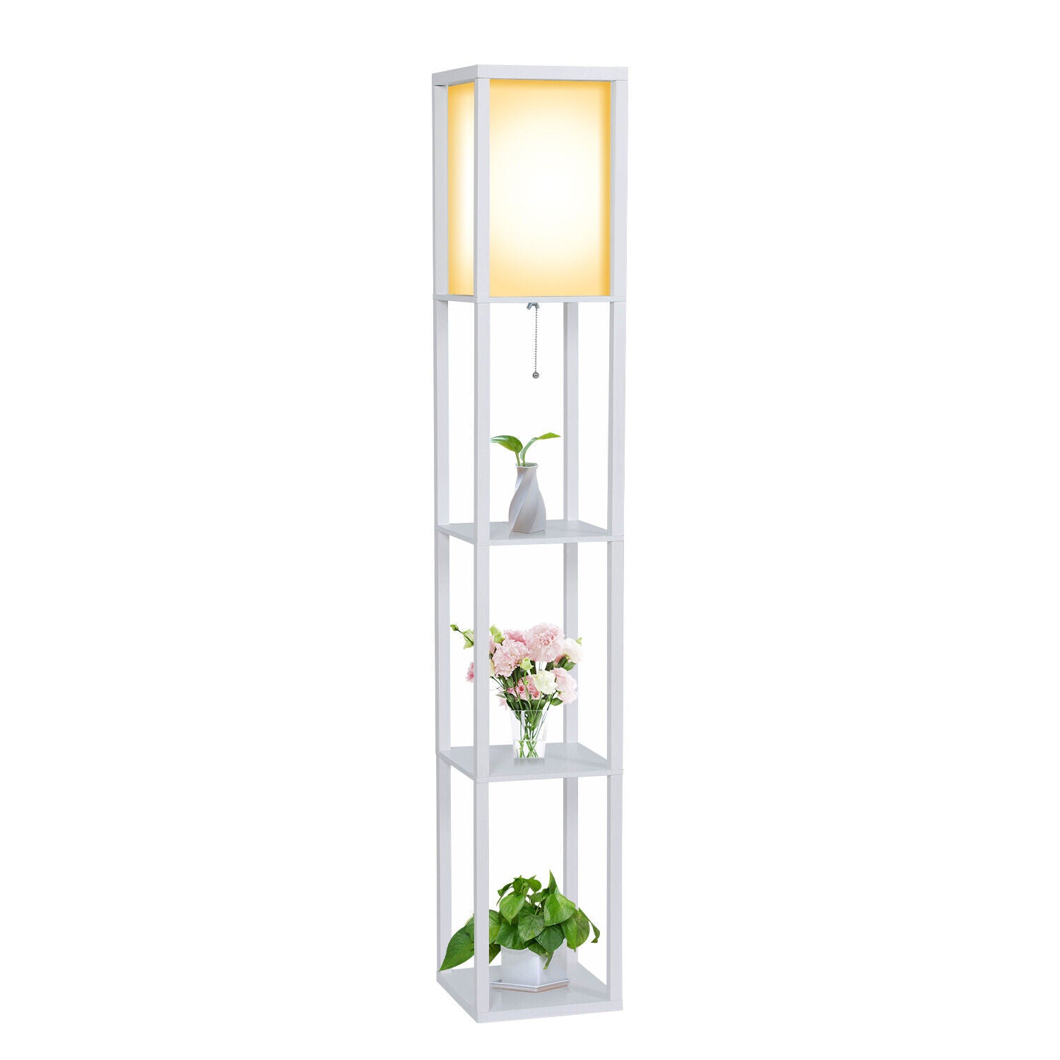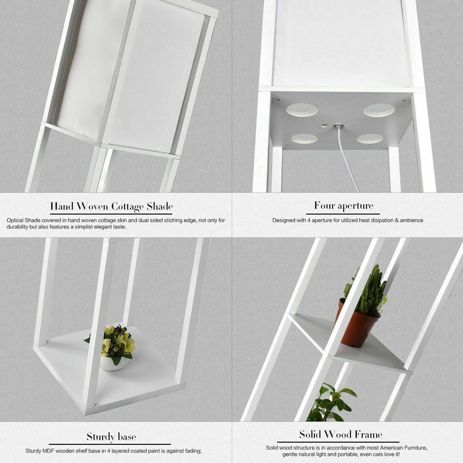 Floor Lamp with Shade Standing Light Reading Shelf Bedroom Livingroom White Wood