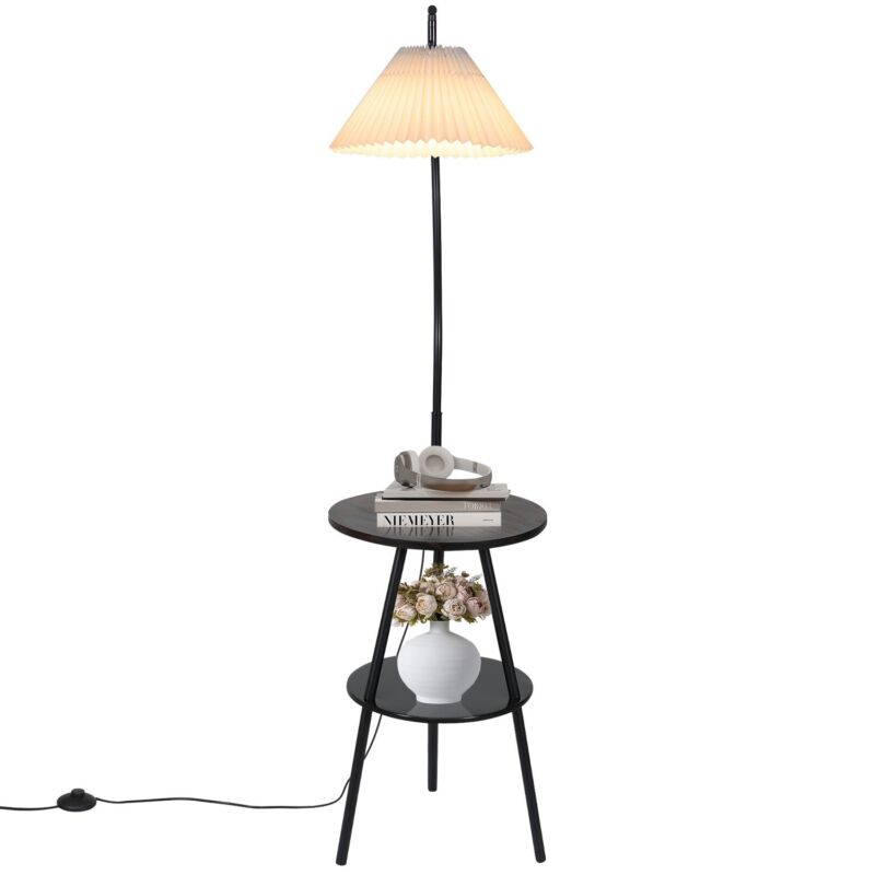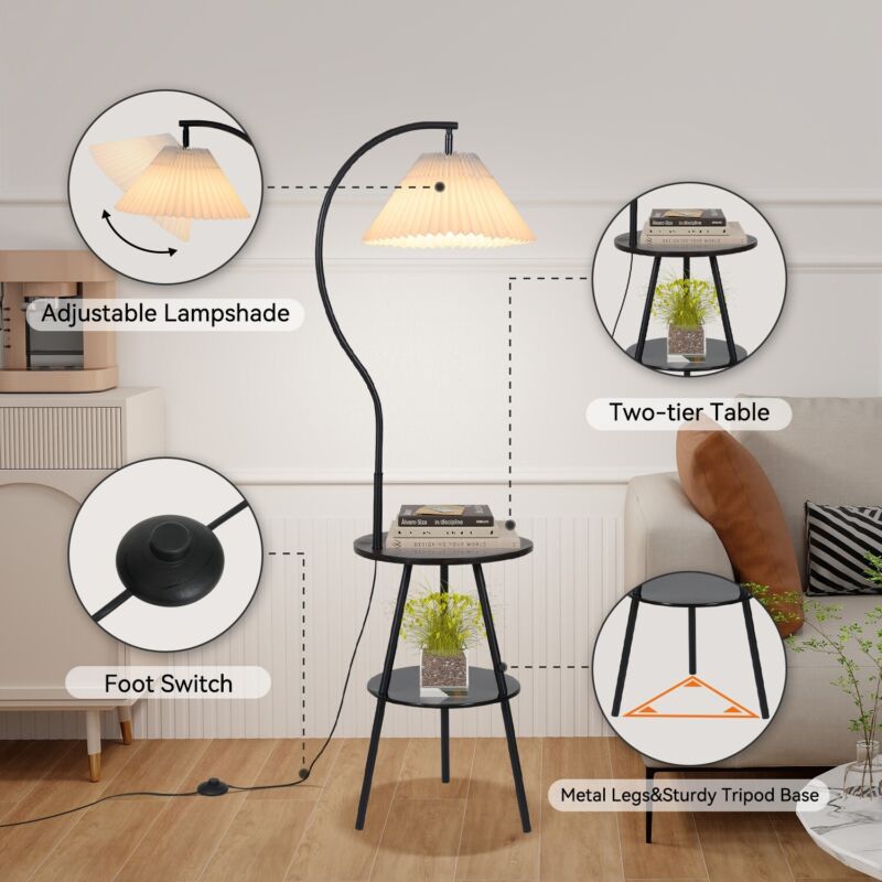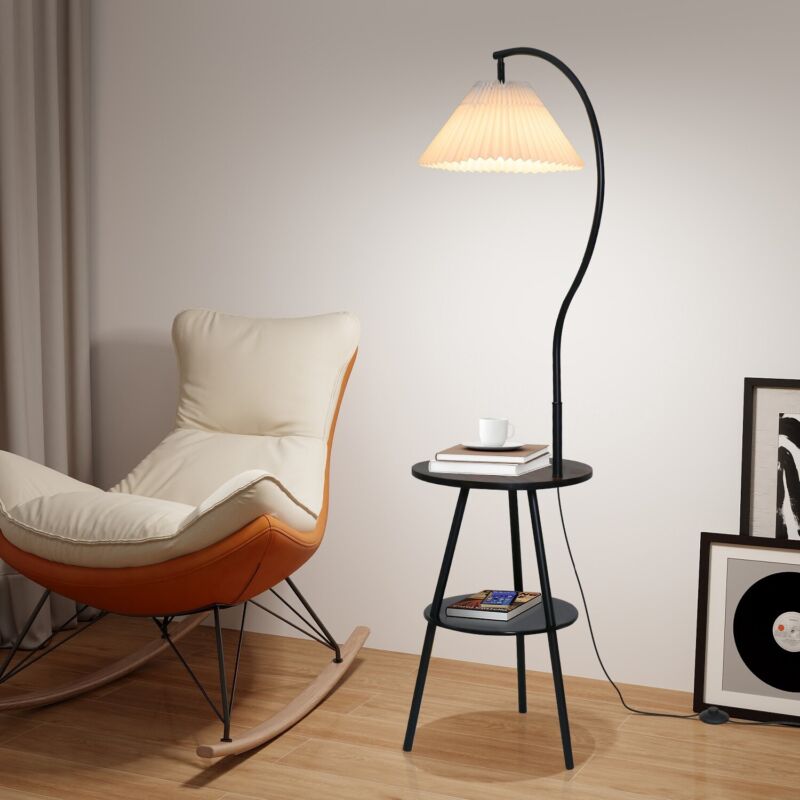 Floor Lamp with Table Shelves Pleat Lampshade Standing Lamp Bed Sofa Side Table