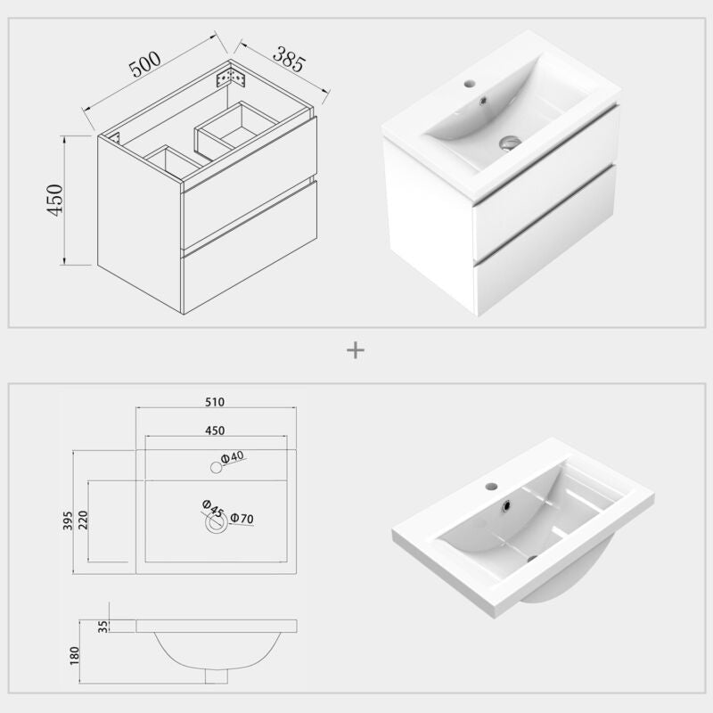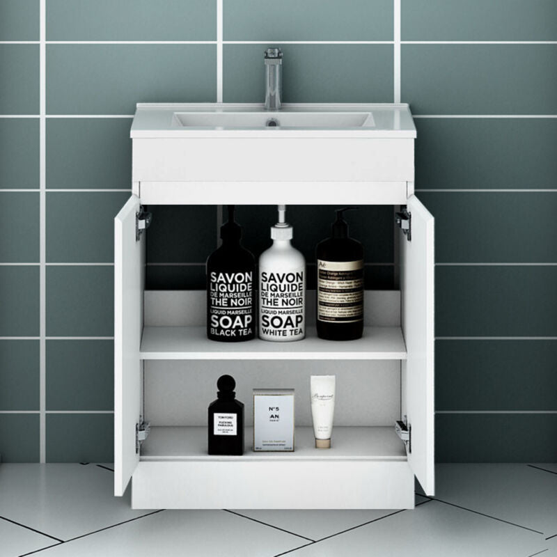 Floor or Wall Bathroom Vanity Unit Doors Drawer White with Baisn 500mm / 600mm
