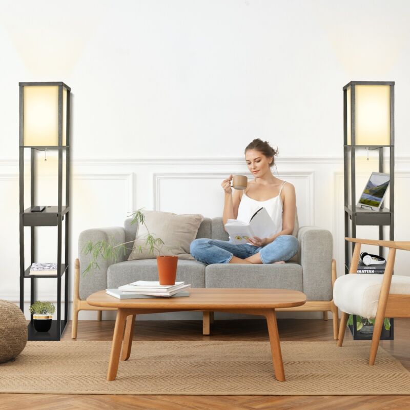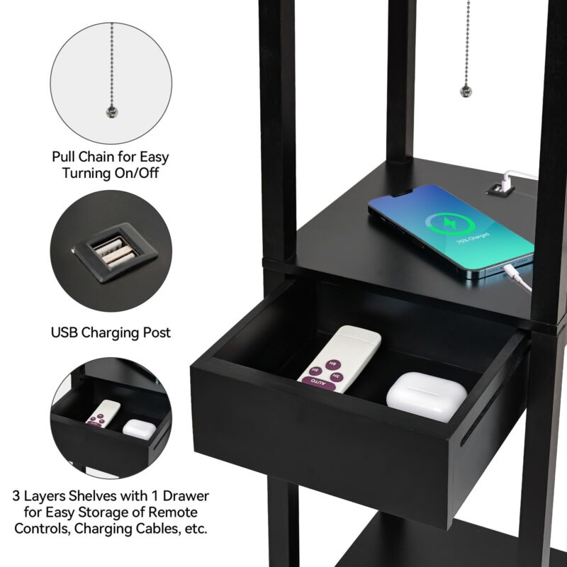 Floor Shelf Lamp with Bulb 2 USB Charging Ports 1 Drawer Modern Standing Light