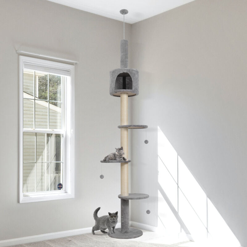 Floor to Ceiling Cat Tree Tower Climbing Activity Center with Condo 220-260cm