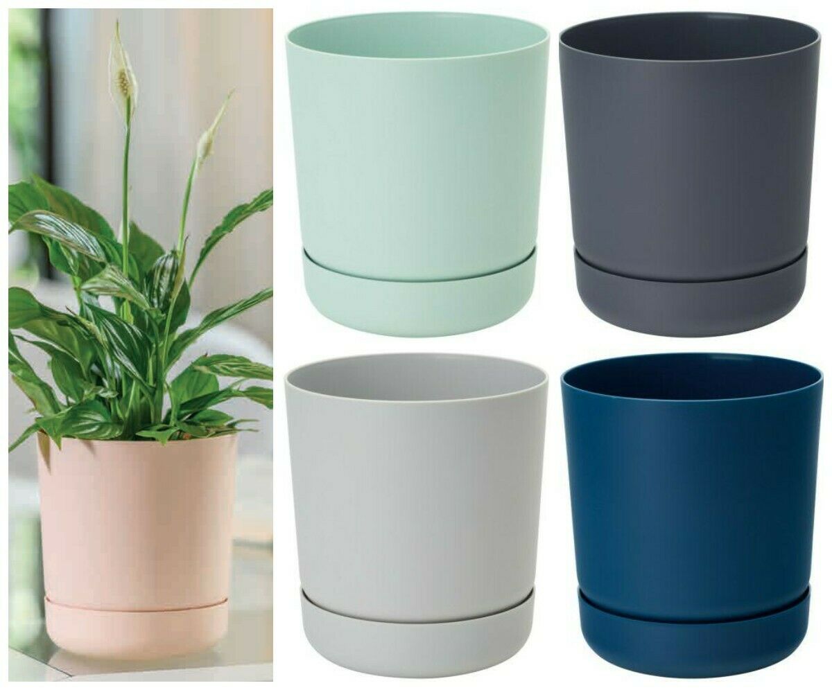 Flowerpot with saucer indoor outdoor drainage holes small large plant pot SATINA