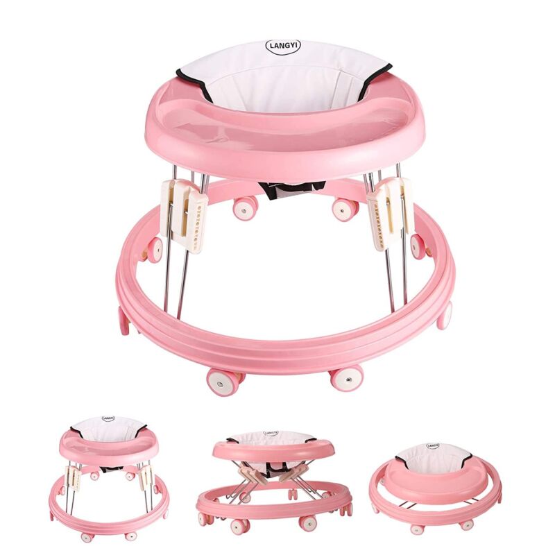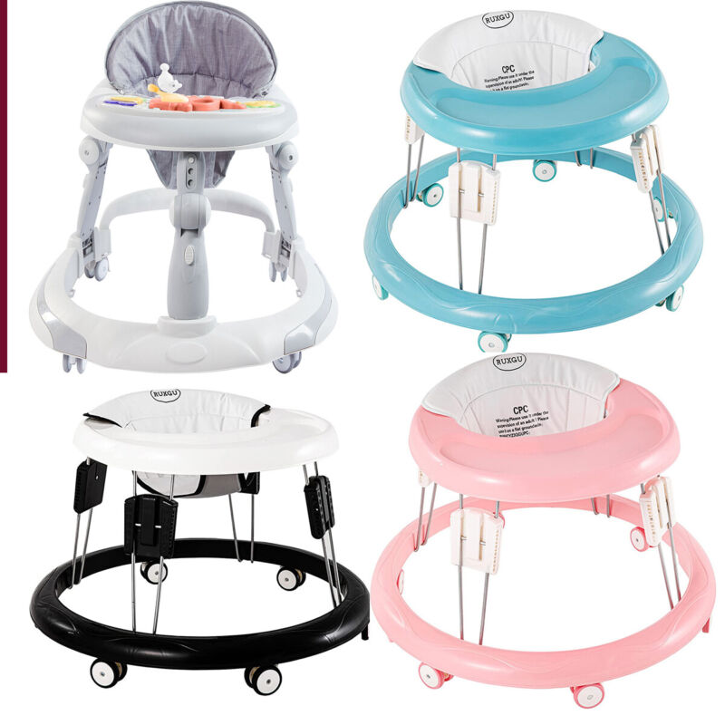 Foldable Baby Walker Adjustable Height Toy Feeding Tray Walking Pad First Step