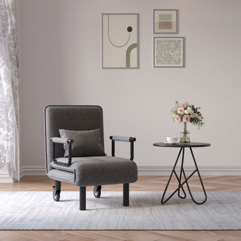 Foldable Chair Bed Sofabed Recliner Armchair with 2 Wheels Pillow Guest Sleeper