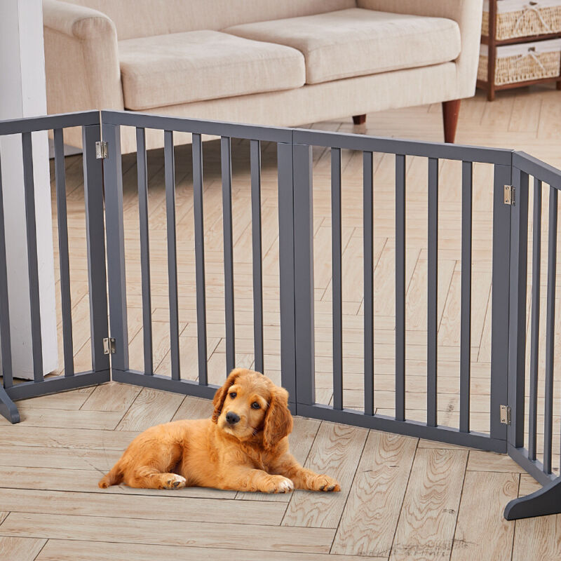Foldable Dog Fence Barrier Pet Gate PlayPen Wooden Divider Fence Doorway Gate UK