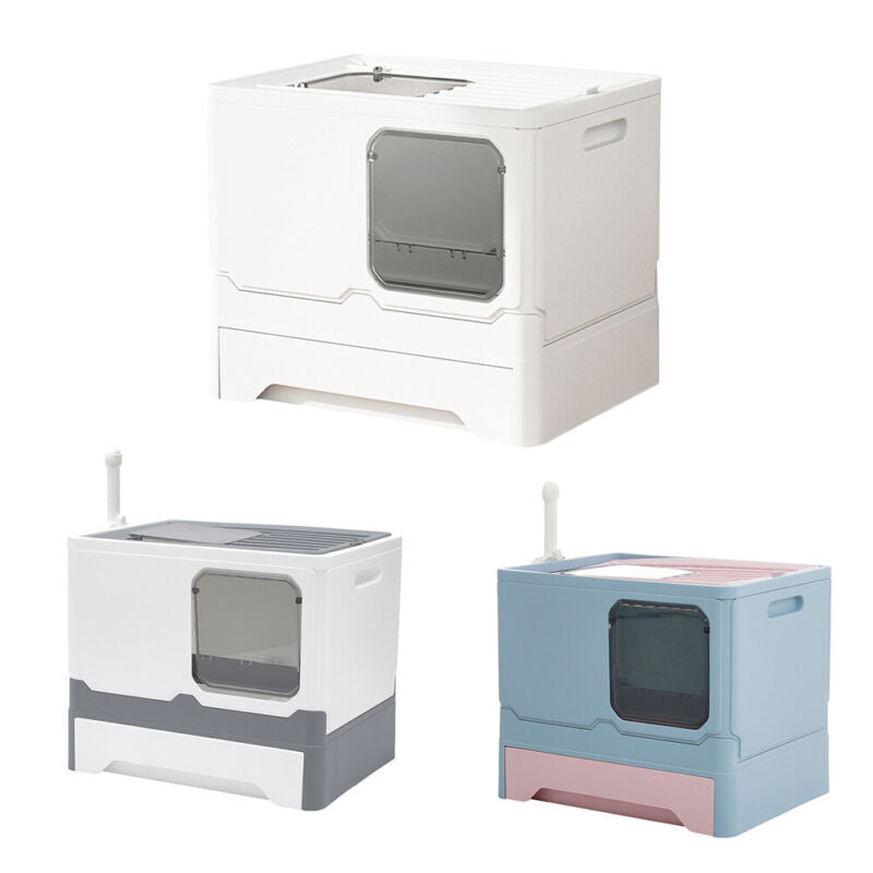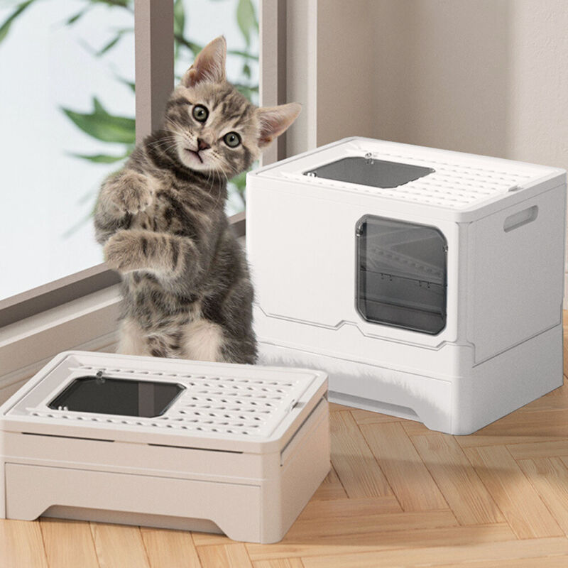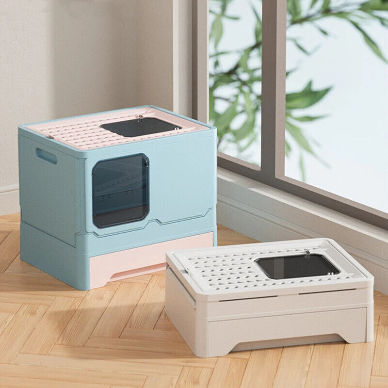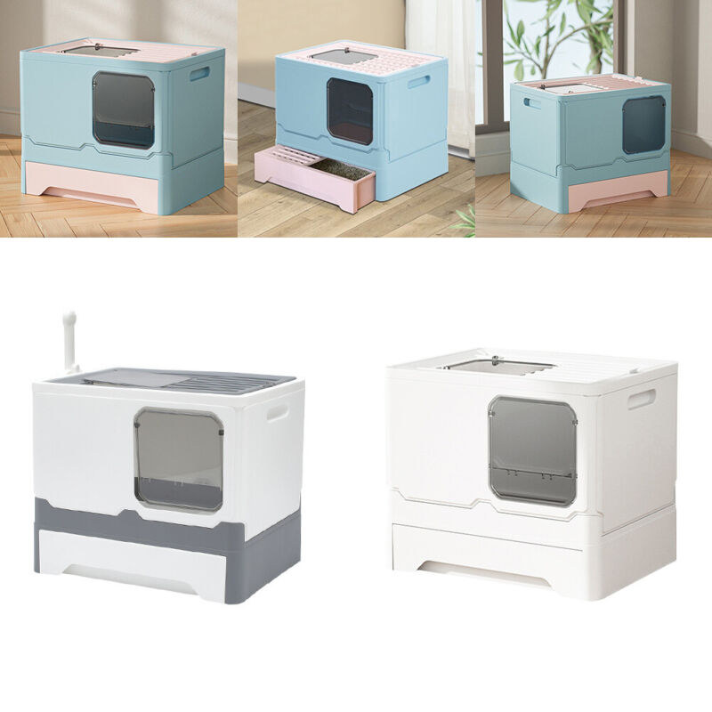 Foldable Double Door Cat Litter Box Pet Toilet Tray w/ Lid Drawer For Cat&Rabbit