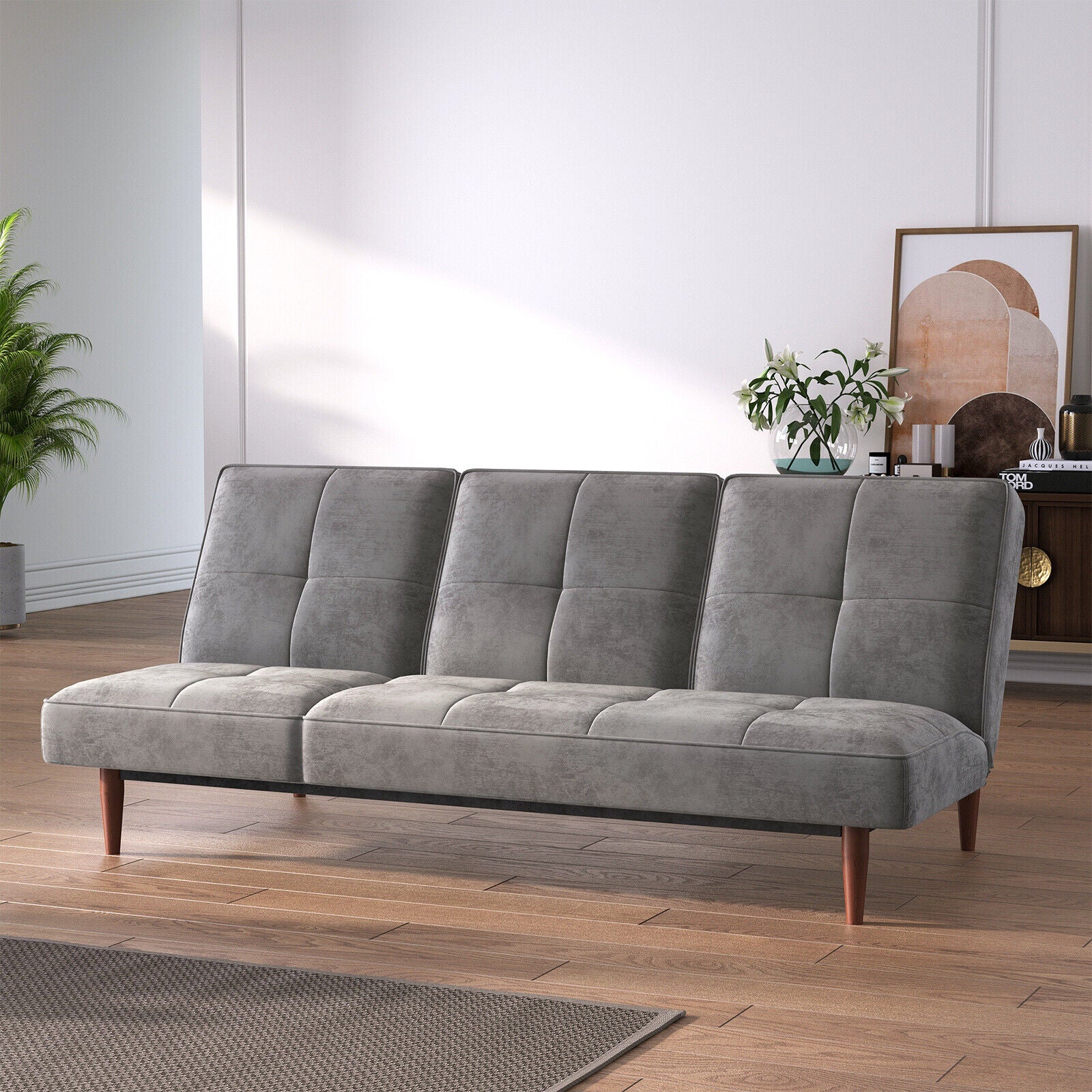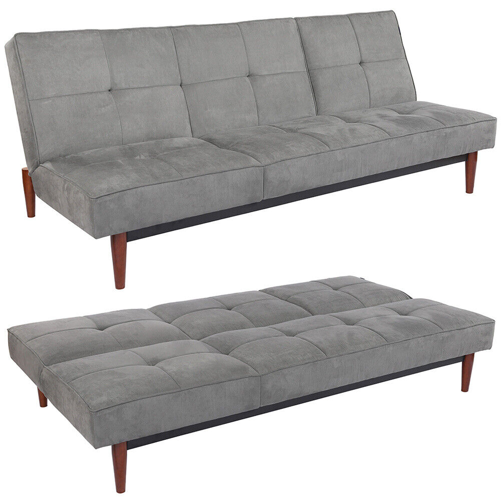 Foldable Multi Angle Adjust 3 Seater Sofa Bed Velvet Tufted Couch Settee Sofabed