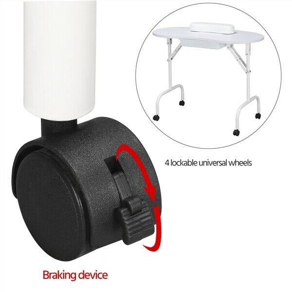Foldable Nail Table Portable Manicure Desk Mobile Beauty Salon Workstation White