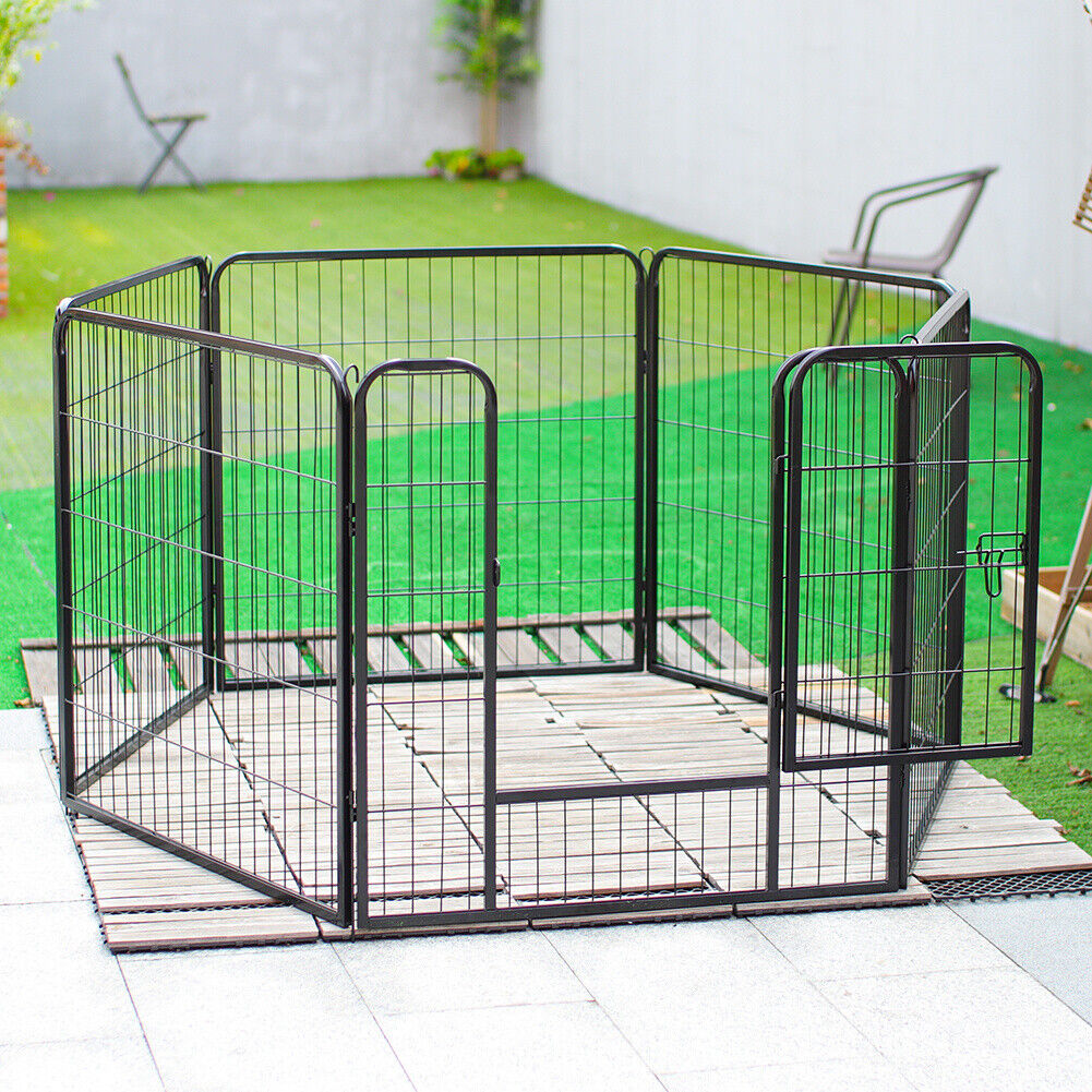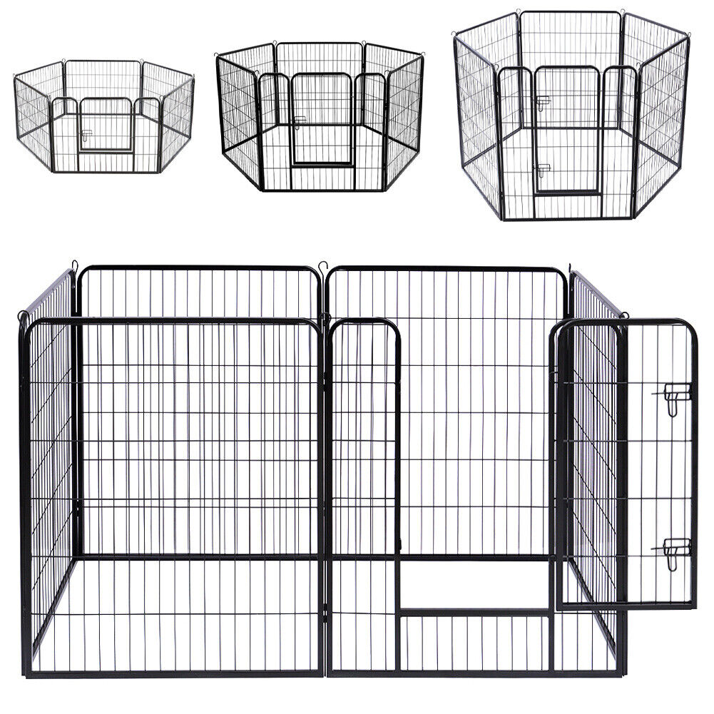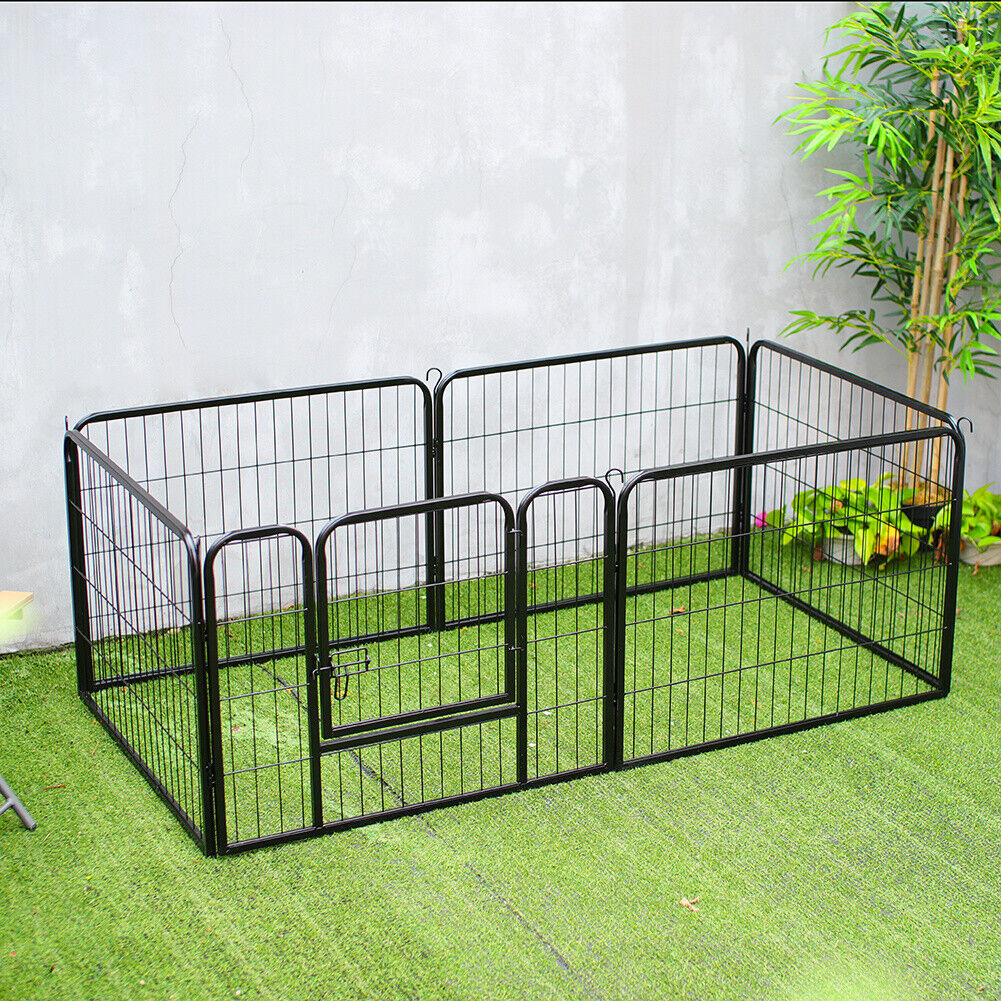 Foldable Pet Play Run Cage Dog Puppy Pen Rabbit Guinea Pig Black Metal Enclosure