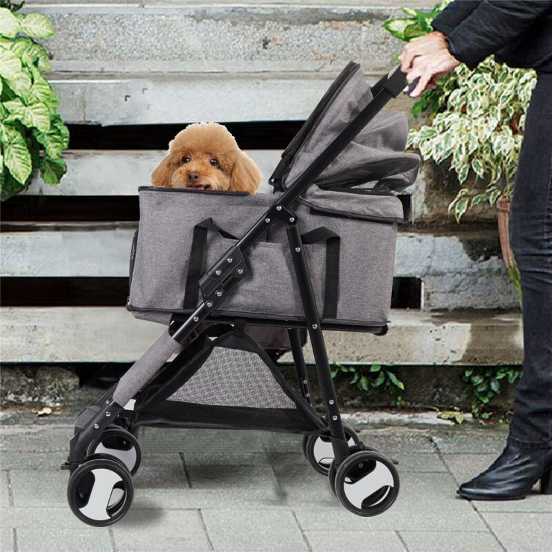 Foldable Pet Stroller Cat Dog Cage 4 Wheel Pushchair Travel Carrier Jogging Cart