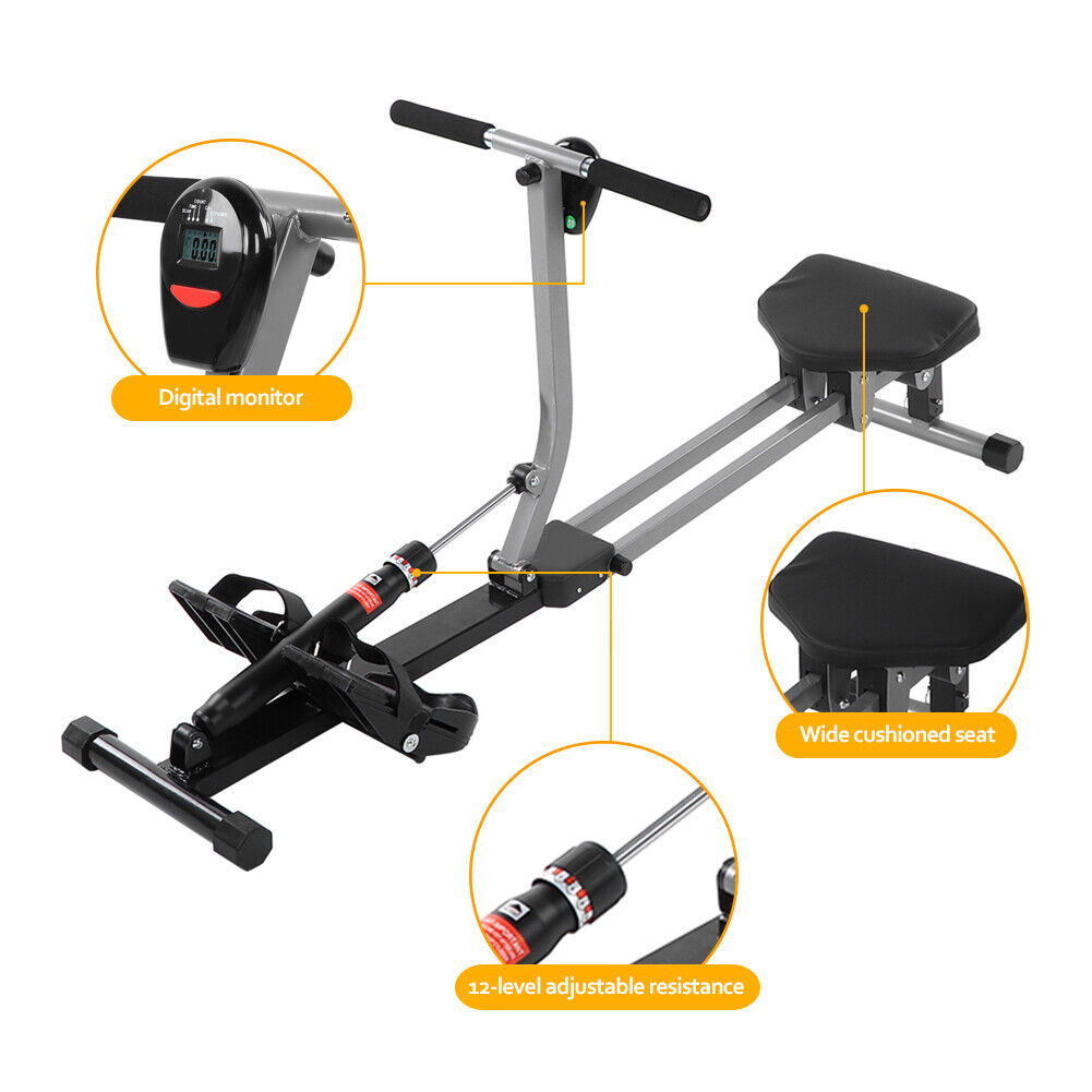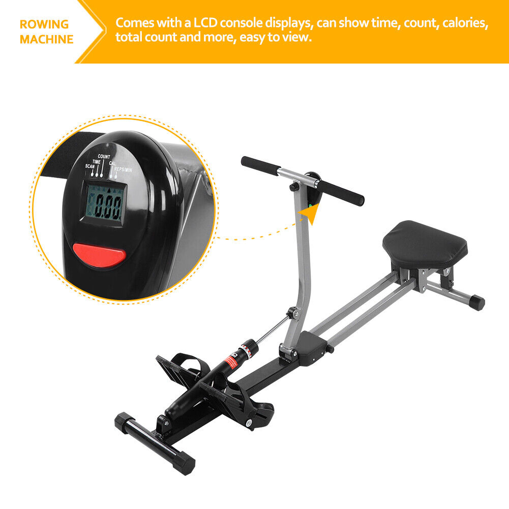 Foldable Rowing Machine Rower Hydraulic Resistance Cardio Fitness Gym Workout #