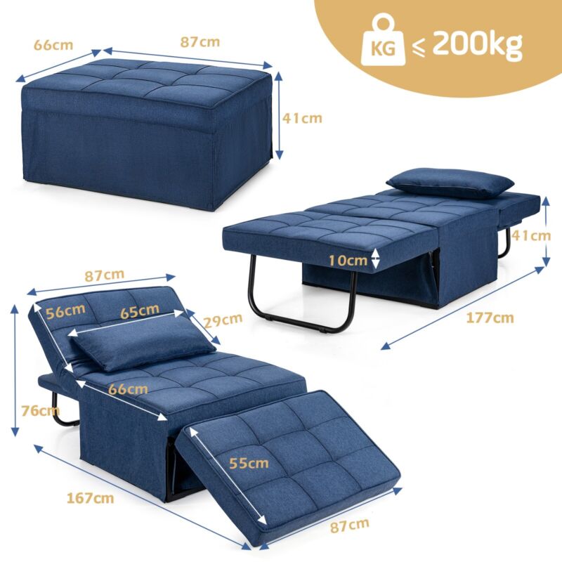 Foldable Sofa Bed 4-In-1 Convertible Sleeper Sofa Chair Adjustable Sofa Recliner
