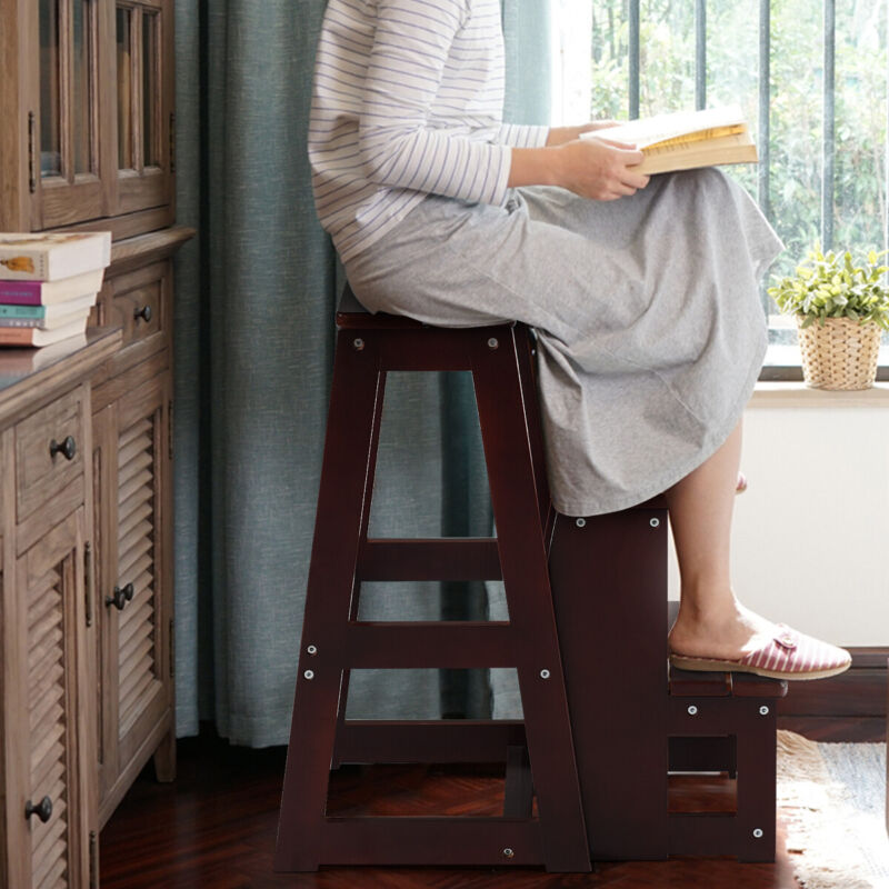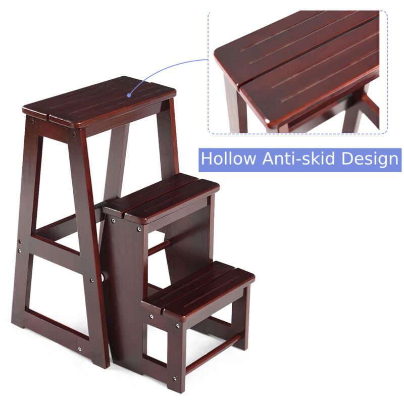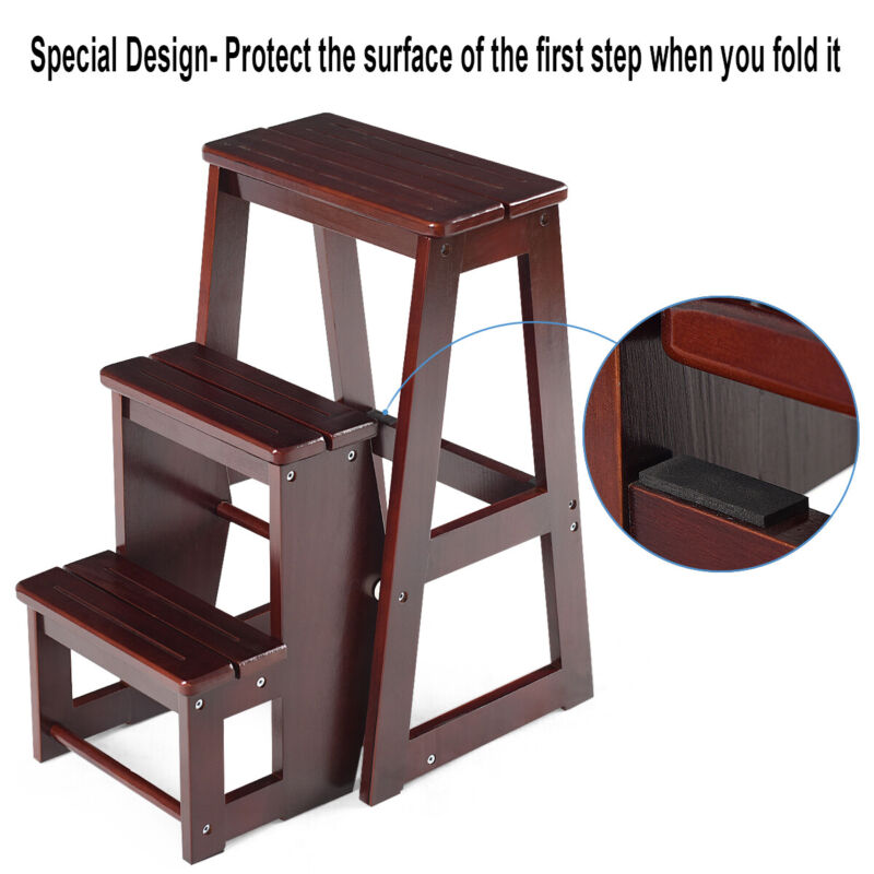 Folding 3 tier Step Stool Wooden Indoor Folding Stepladder Shelf Adults Kids