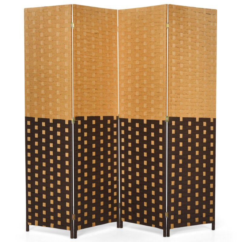 Folding 4 Panel Room Divider Hand-woven Fiber Room Partition Separator Privacy