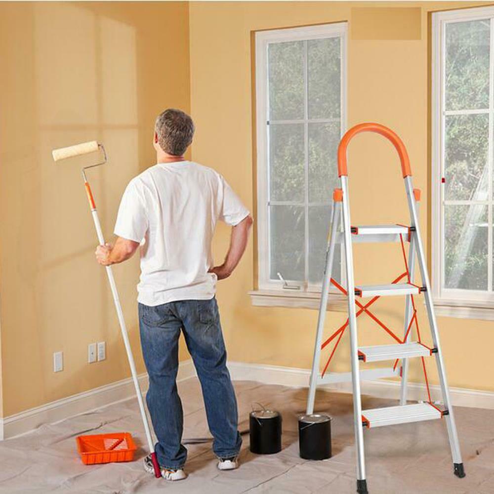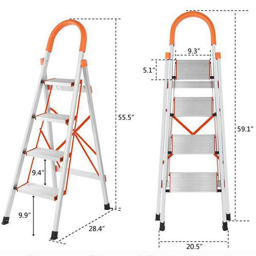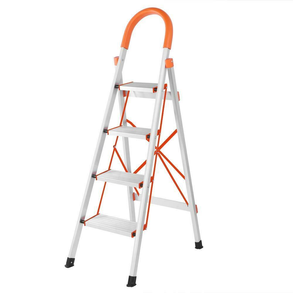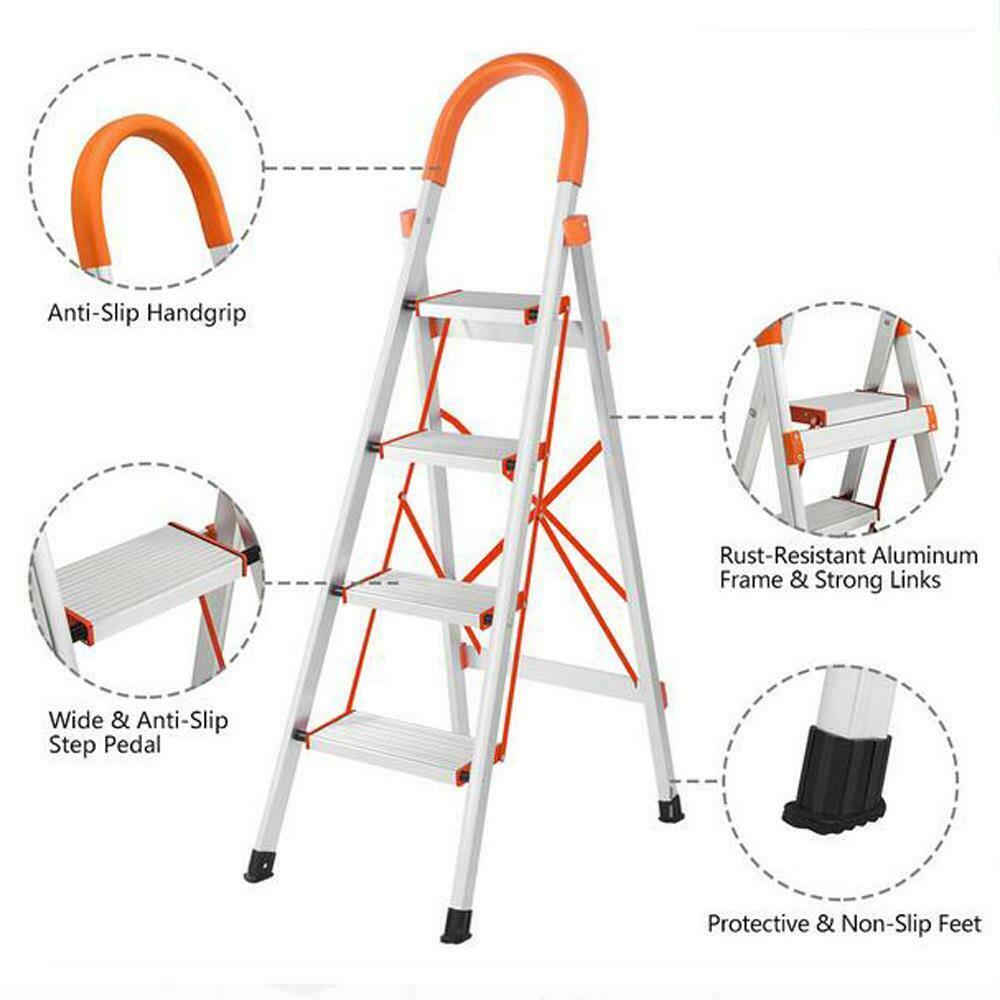 Folding 4 Step Ladder Safety Non Slip Mat Tread Small Stool Ladders Kitchen Home