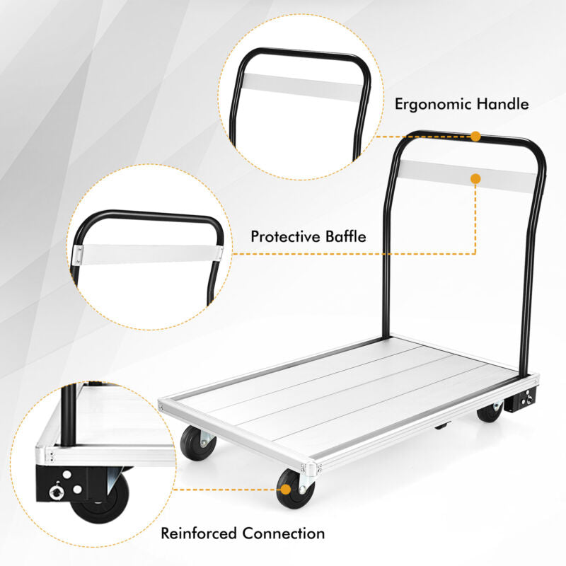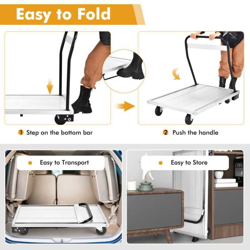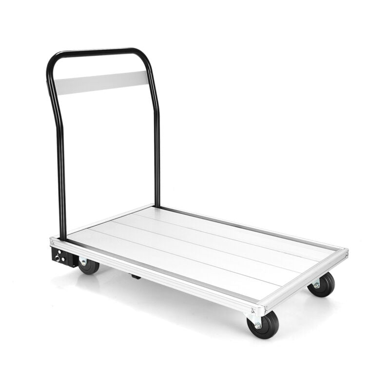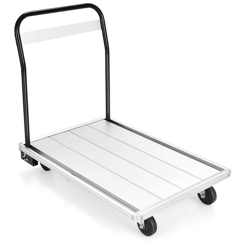 Folding Aluminum Alloy Platform Cart Heavy Duty Push Cart 4 TPR Wheels 350kg
