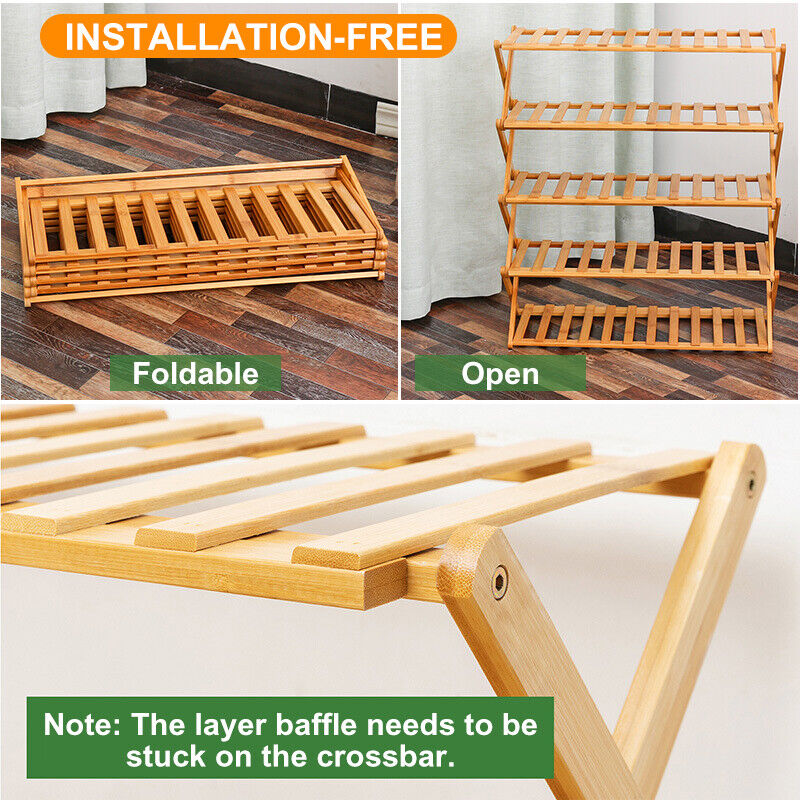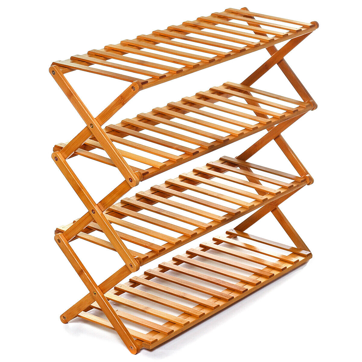 Folding Bamboo Plant Stand Portable Flower Pot Shelf Display Storage Shoe
