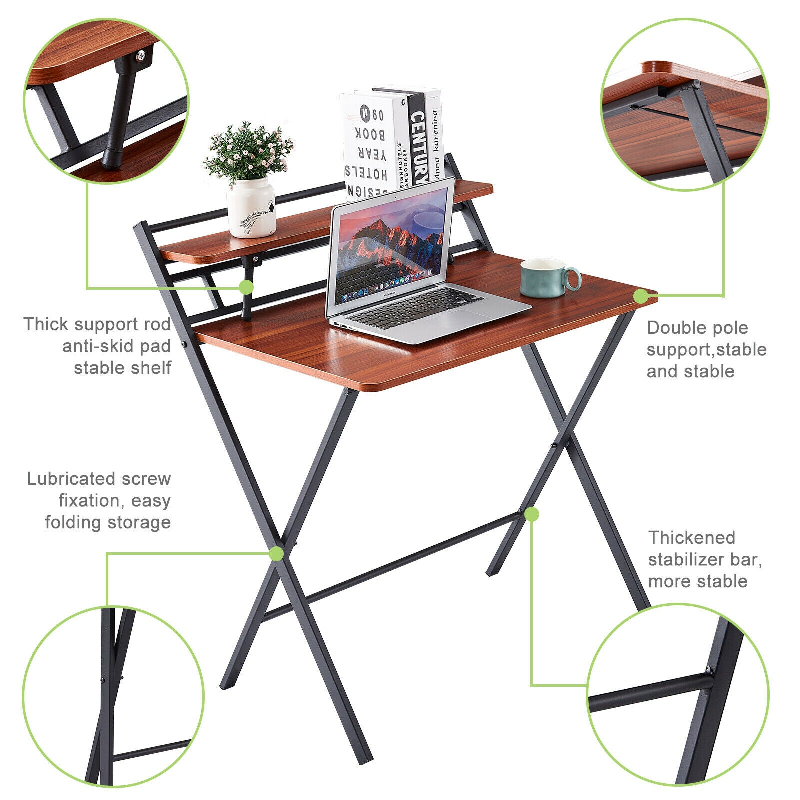 Folding Computer Desk Shelf PC Laptop Desk Home Office Study Table Workstation