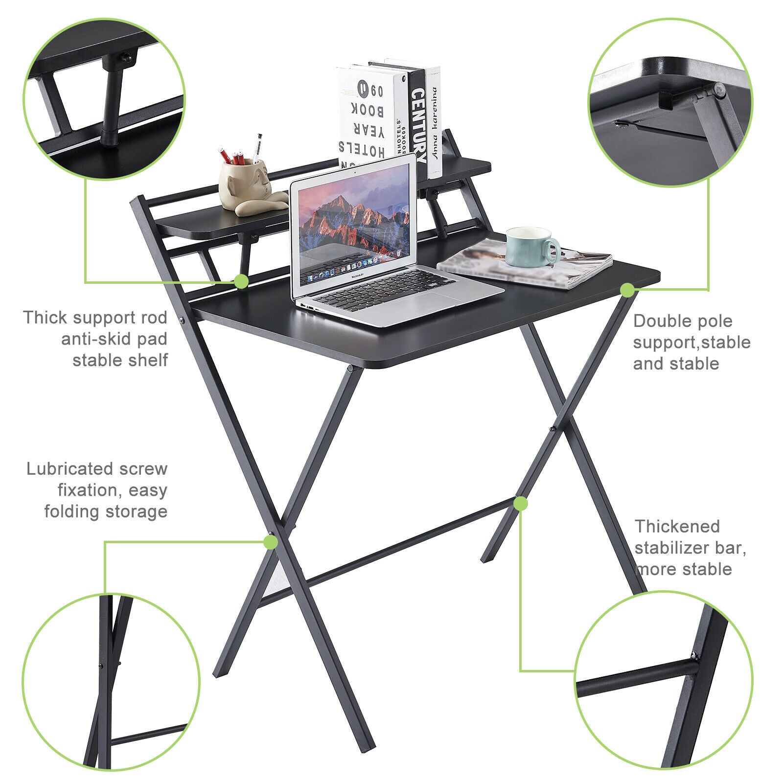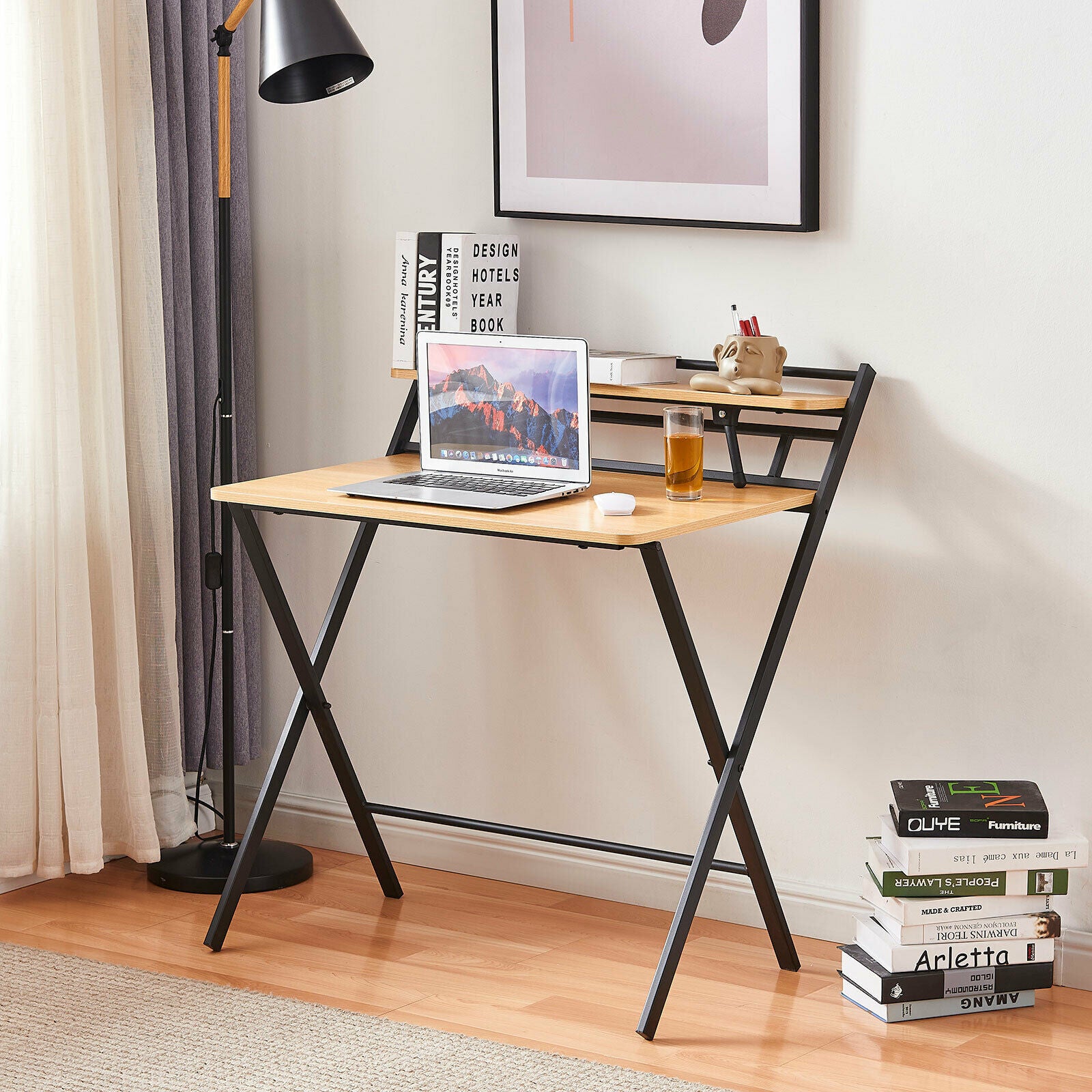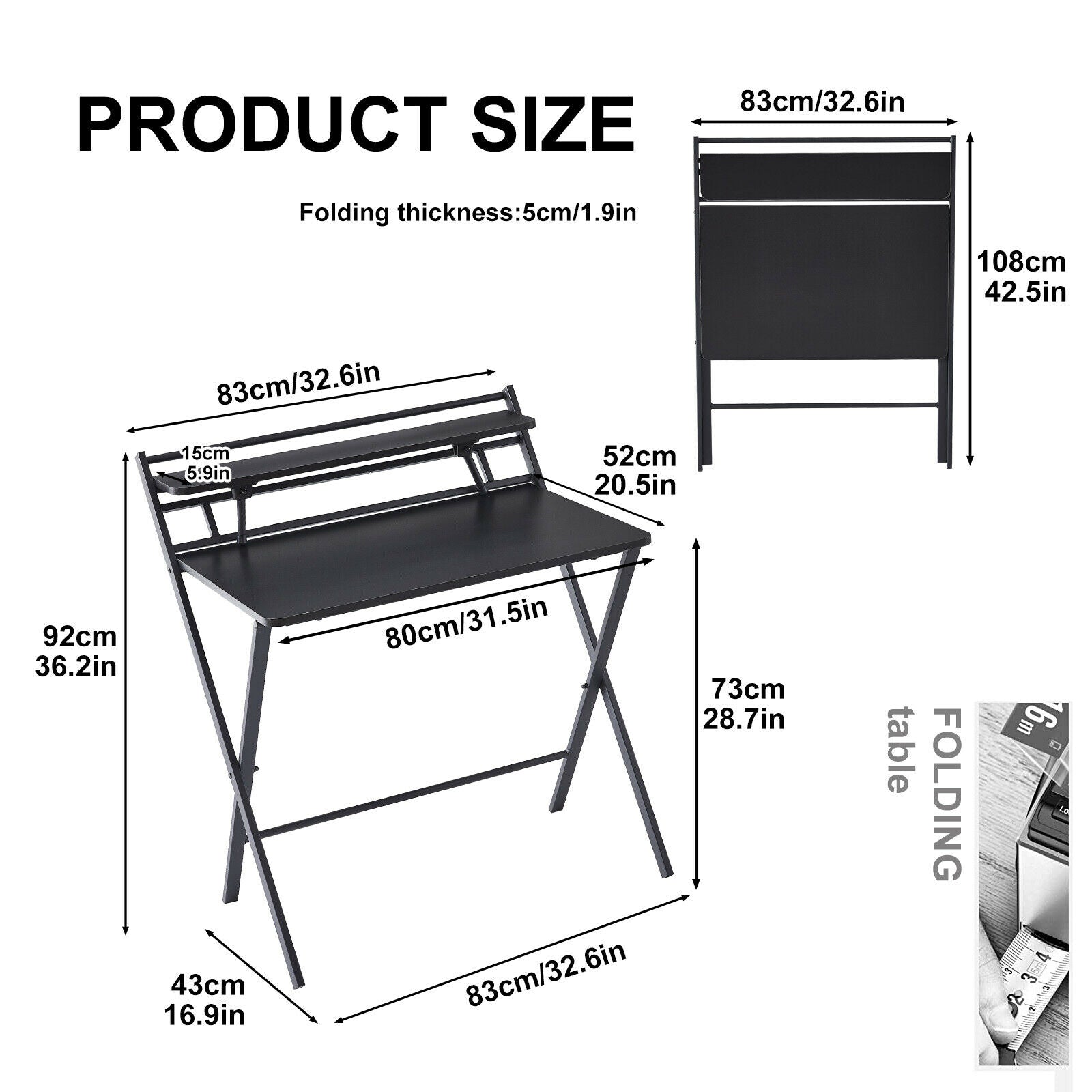 Folding Computer Desk Wooden Study Coffee Table with Shelf Laptop Home Office UK