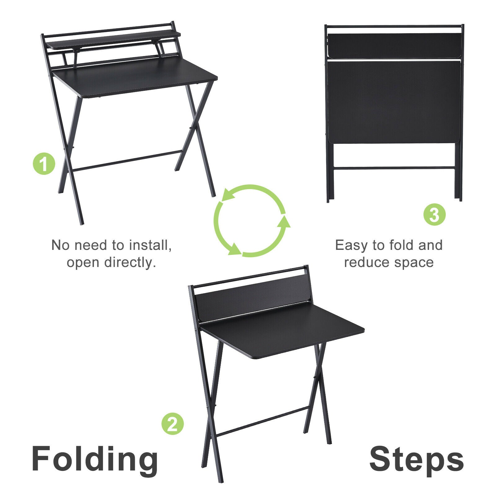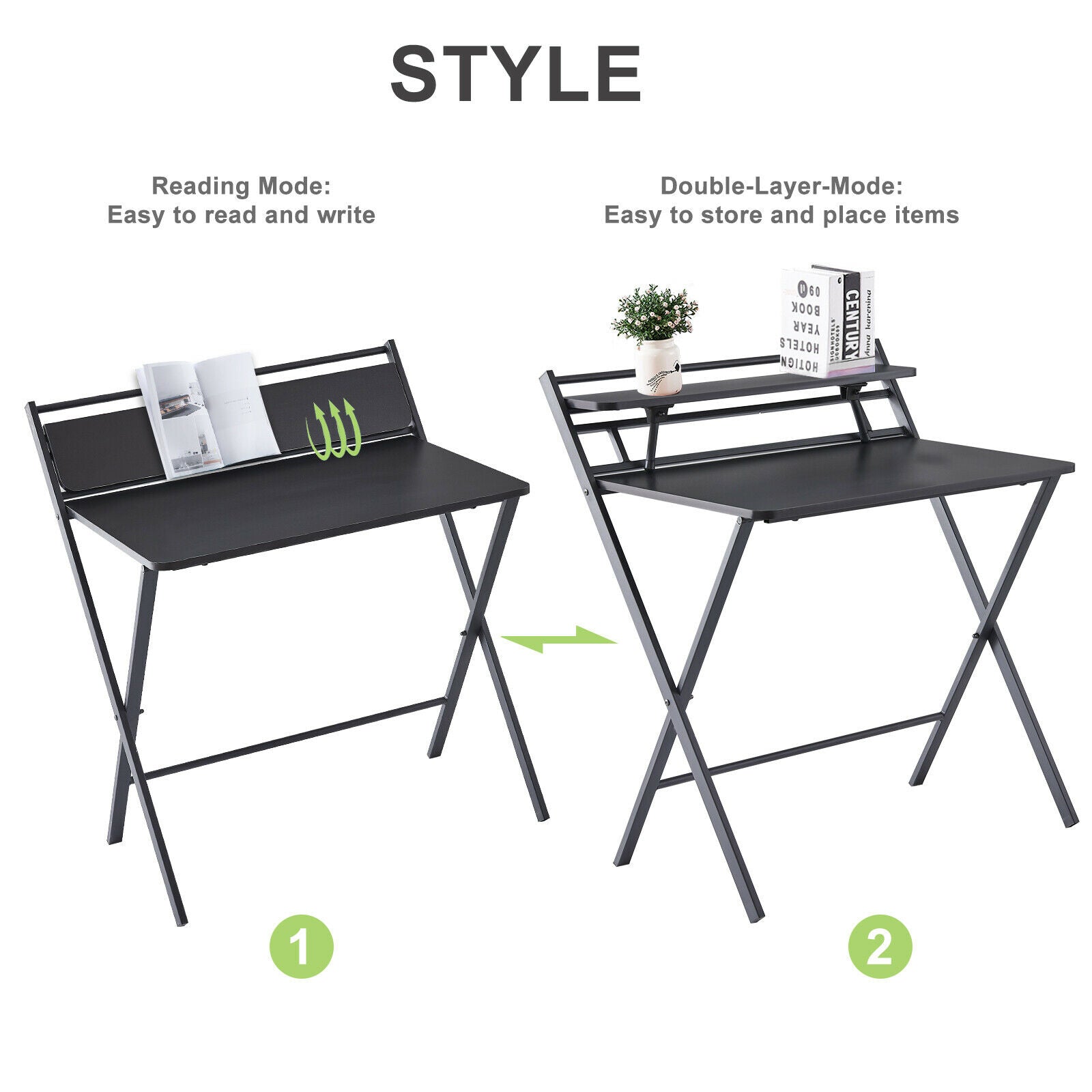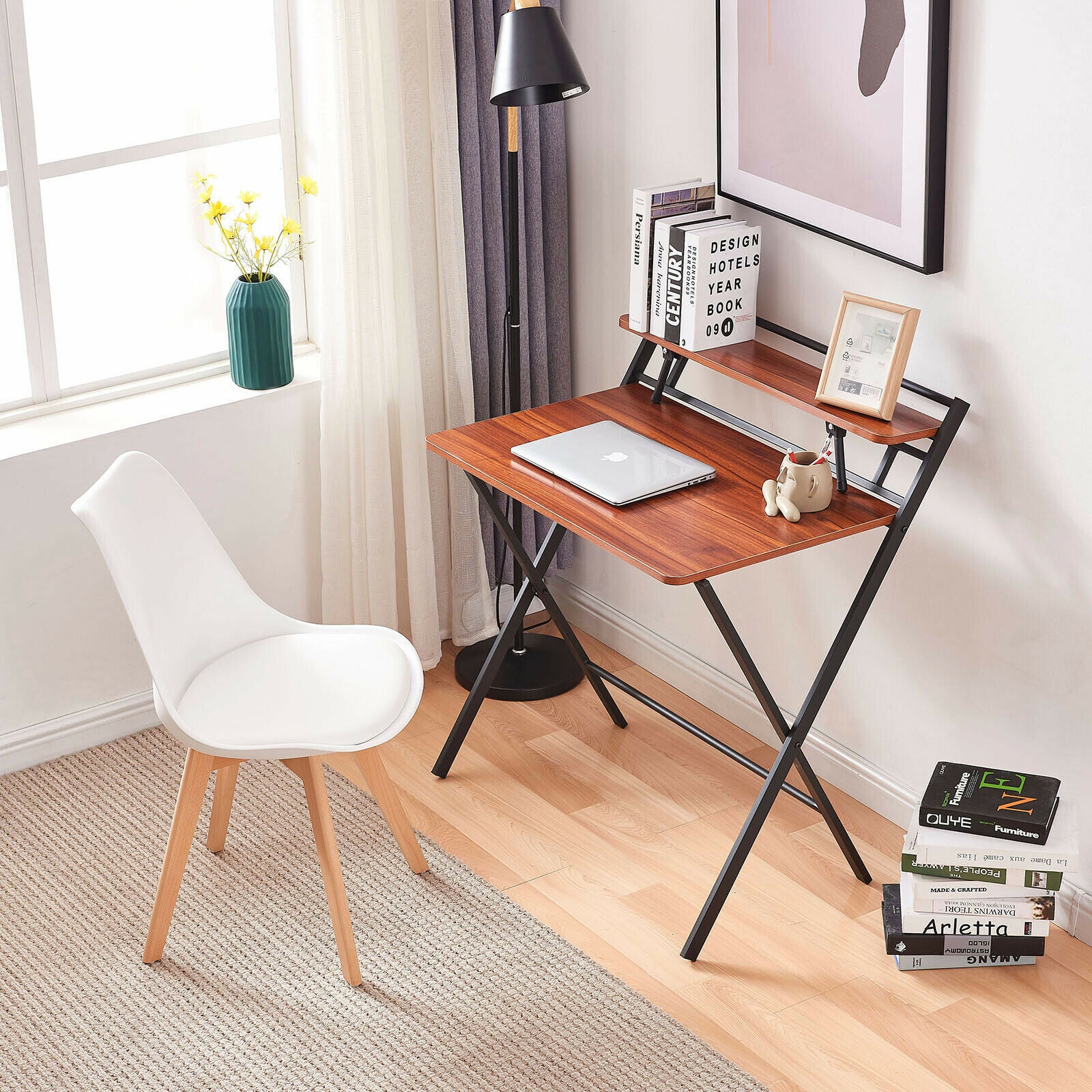 Folding Computer Desk Wooden Study Coffee Table with Shelf Laptop Home Office UK