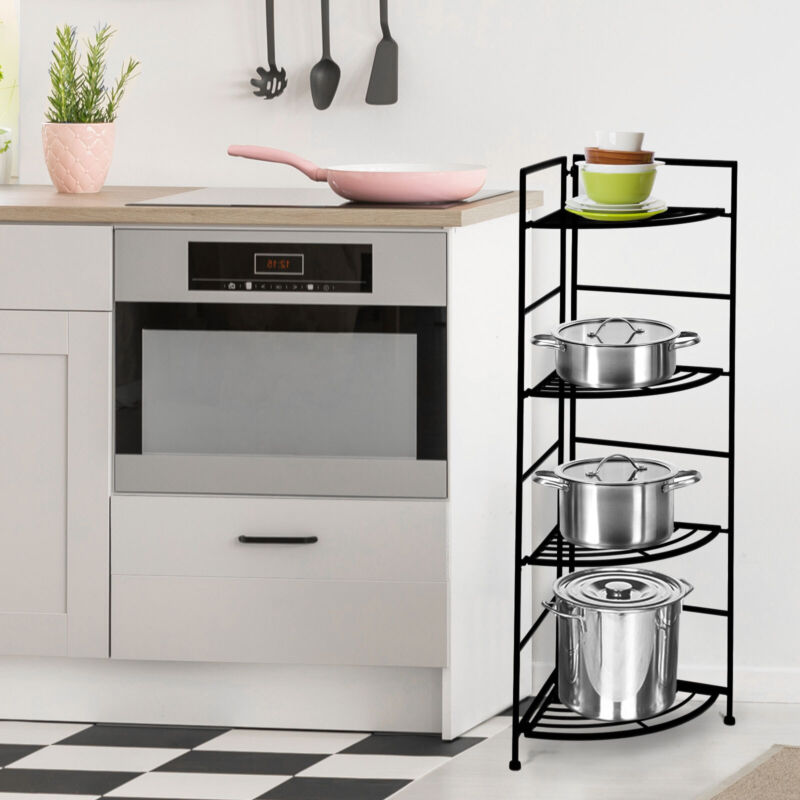 Folding Corner Plant Stand 4 Tier Metal Storage Shelf Flower Display Rack