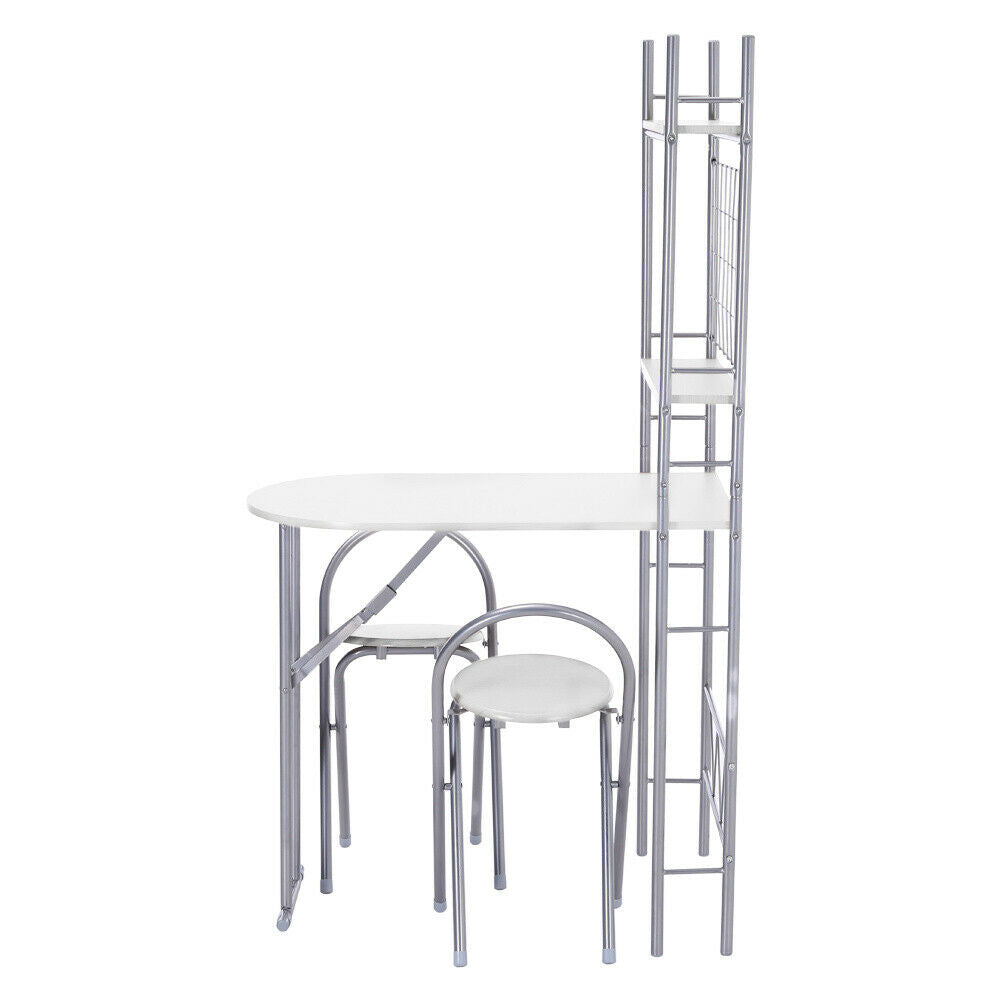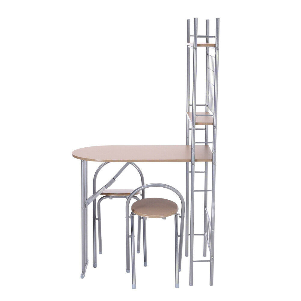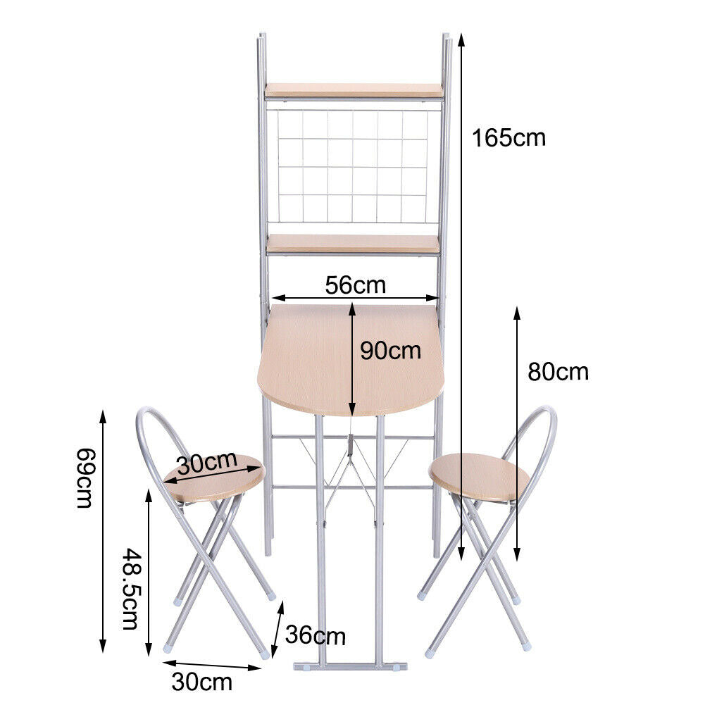 Folding Dining Table Breakfast Bar Table and 2 Stools Set Drop Leaf With Shelf