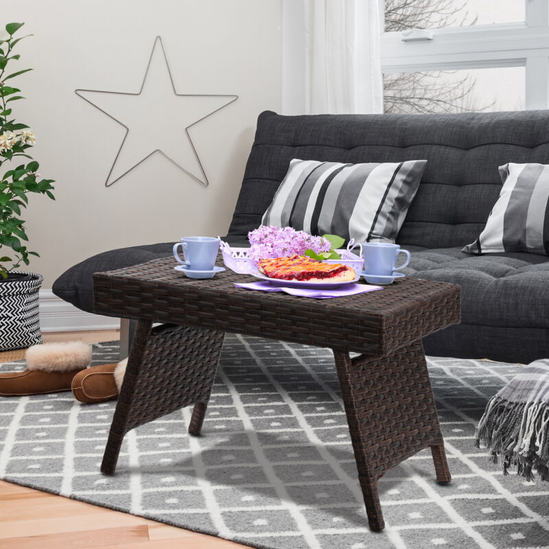 Folding Garden Rattan Side Coffee Table Outdoor Patio Square Desk Furniture