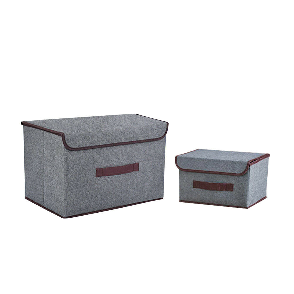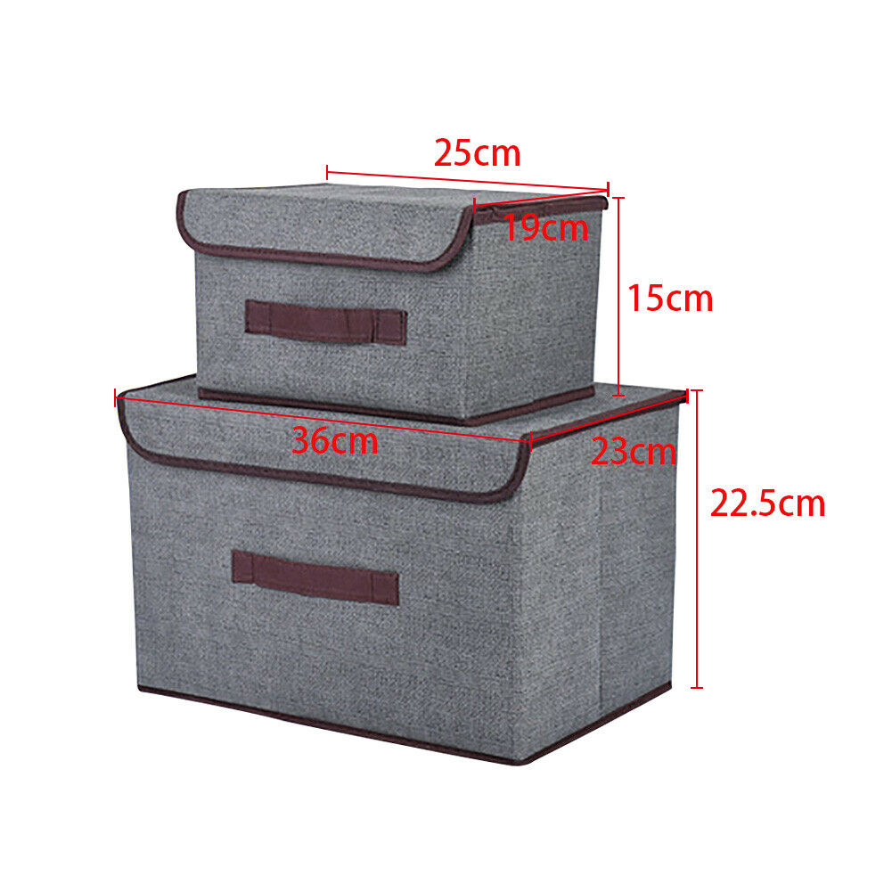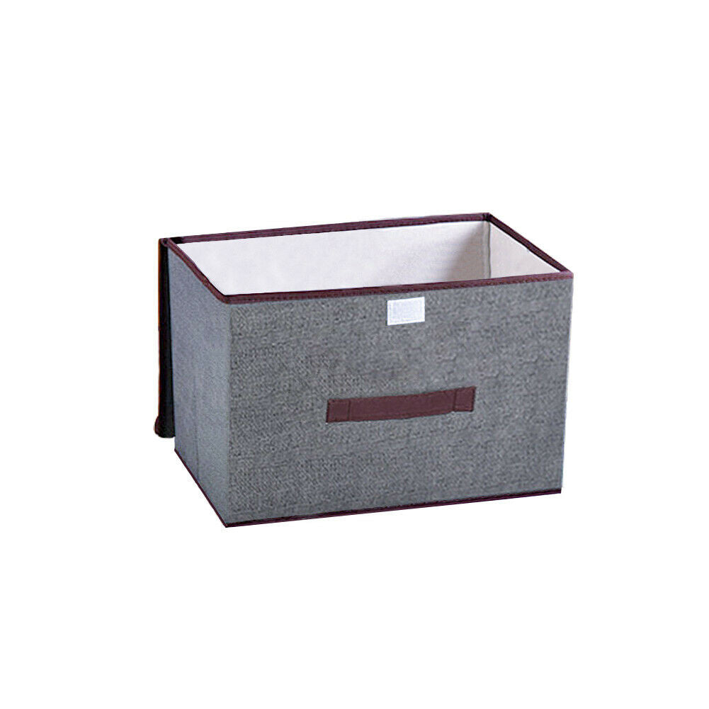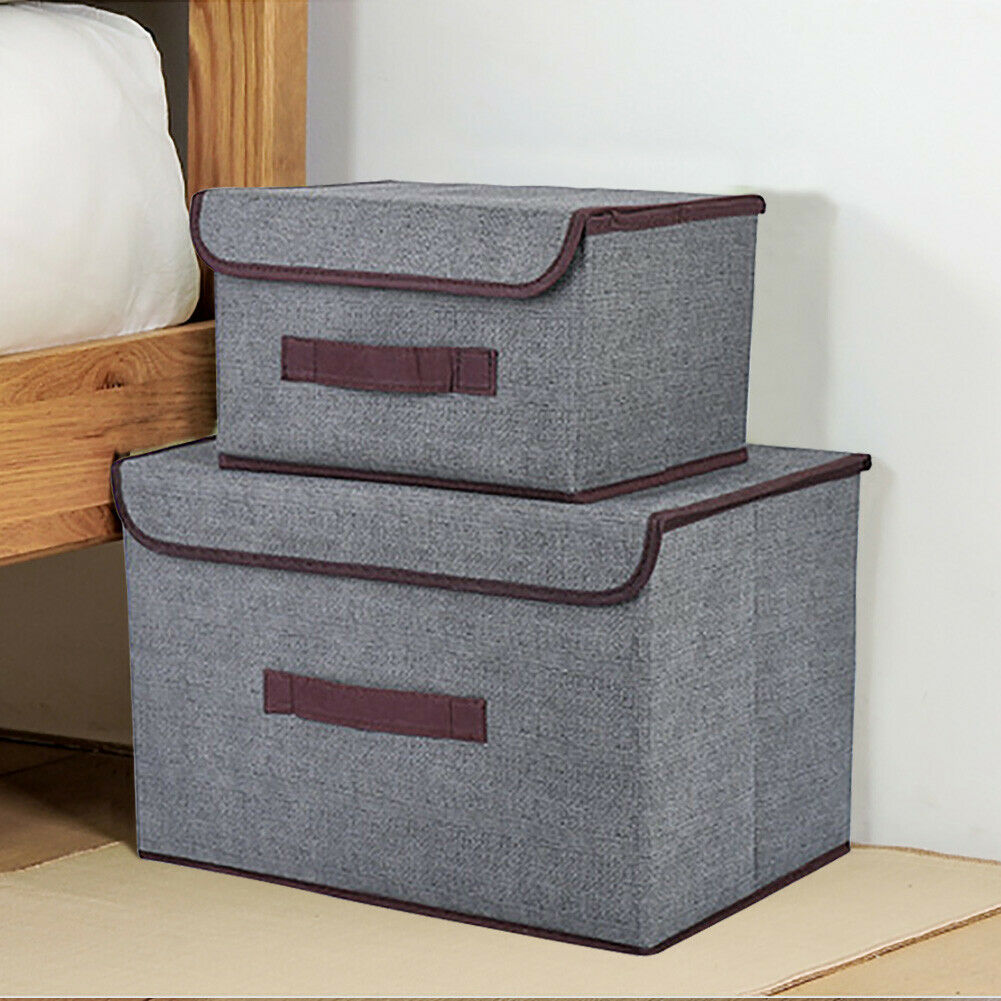Folding Grey Fabric Storage Box With Lid Cloth Basket Home Organizer Large Small