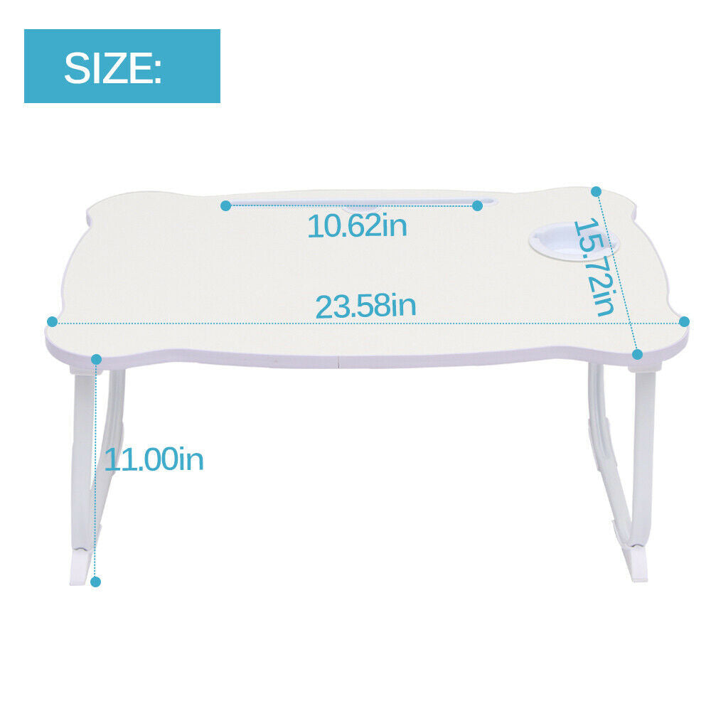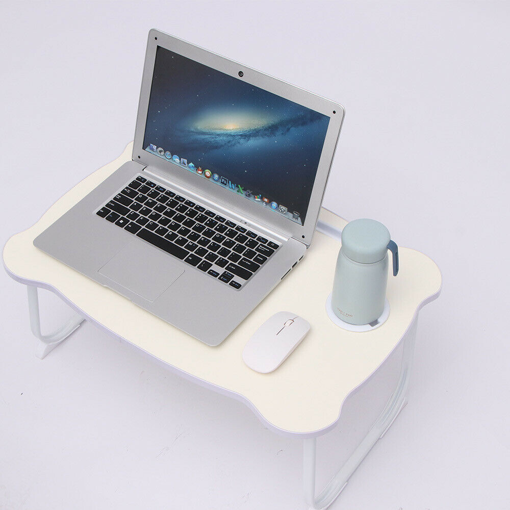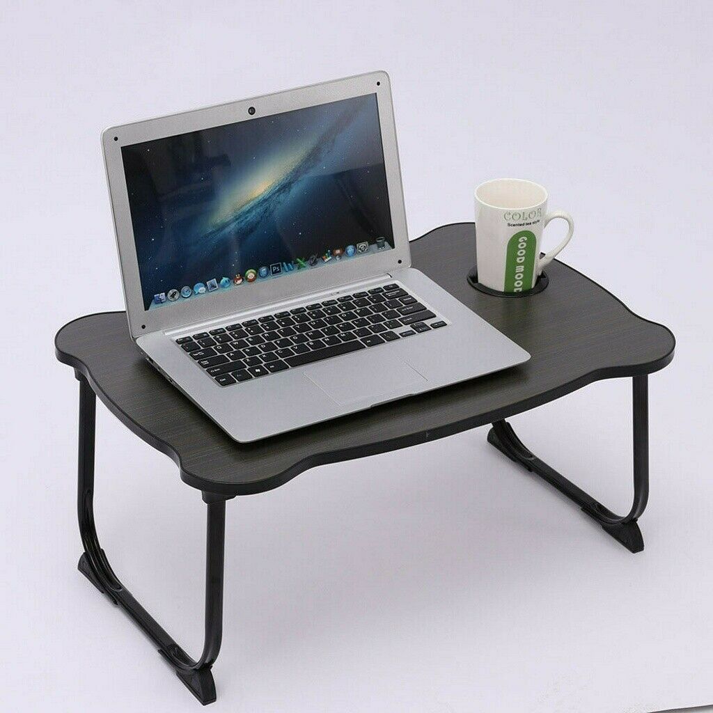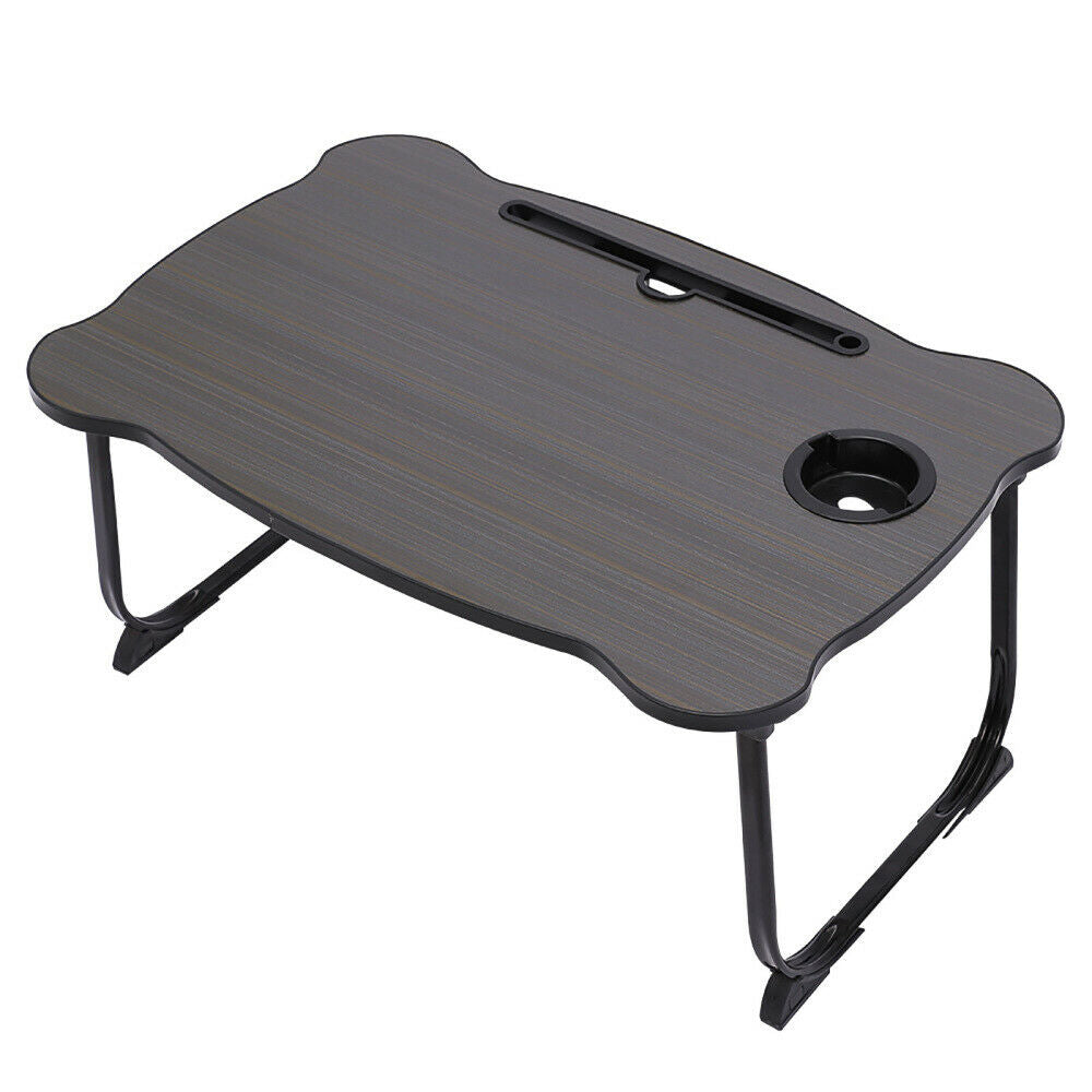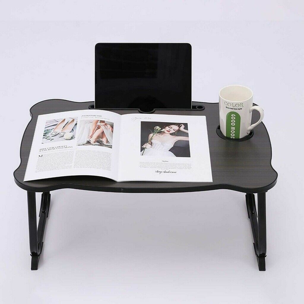 Folding Laptop Bed Tray Table Portable Lap Desk Notebook Breakfast Cup Slot UK