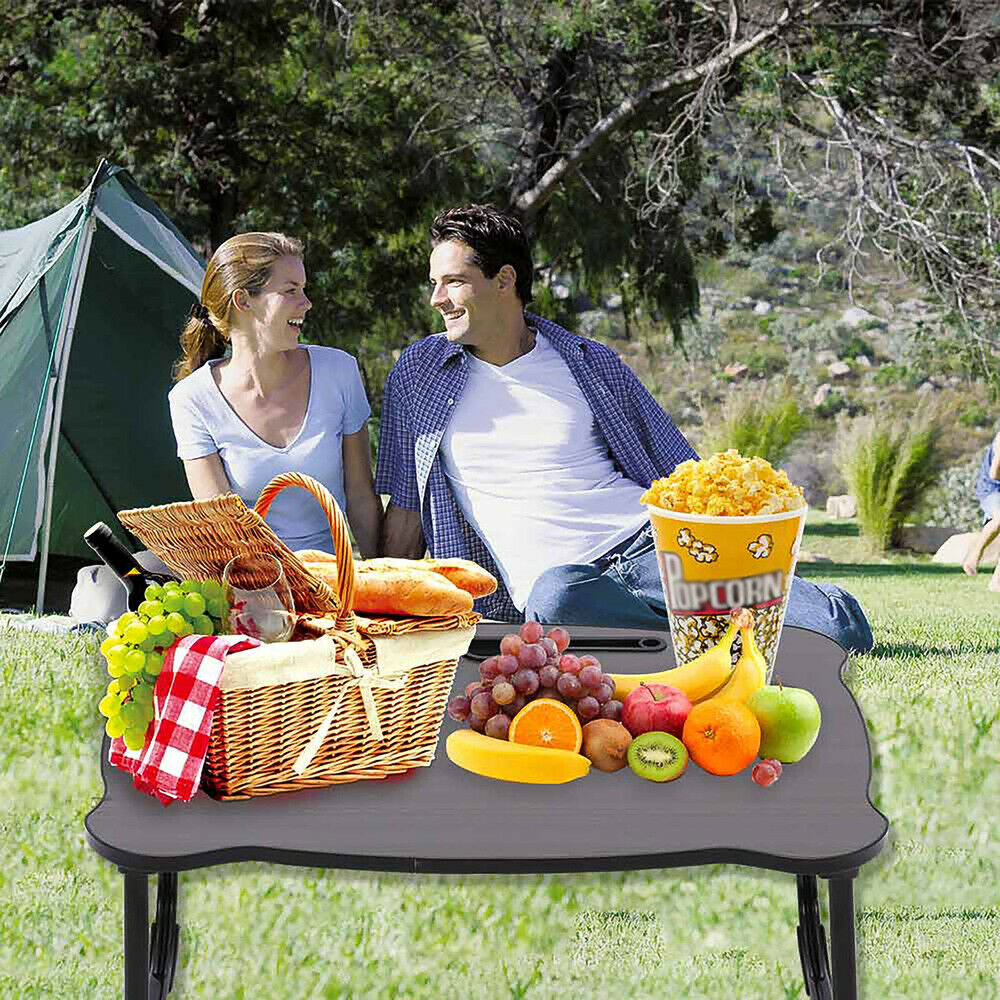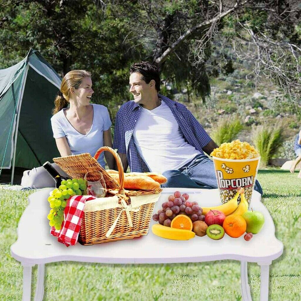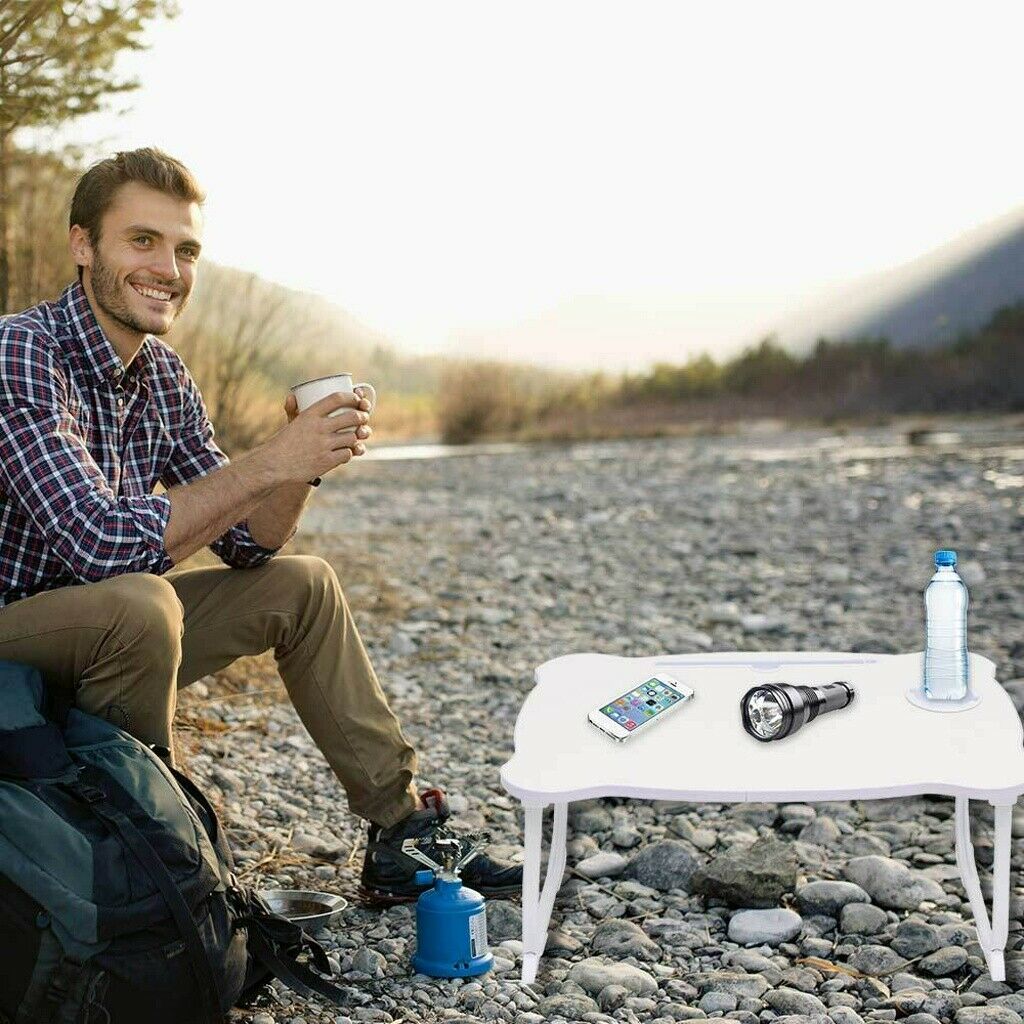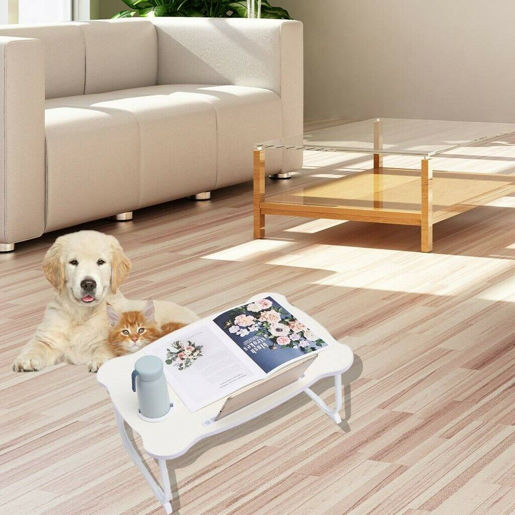 Folding Laptop Bed Tray Table Portable Lap Desk Notebook Breakfast Cup Slot UK