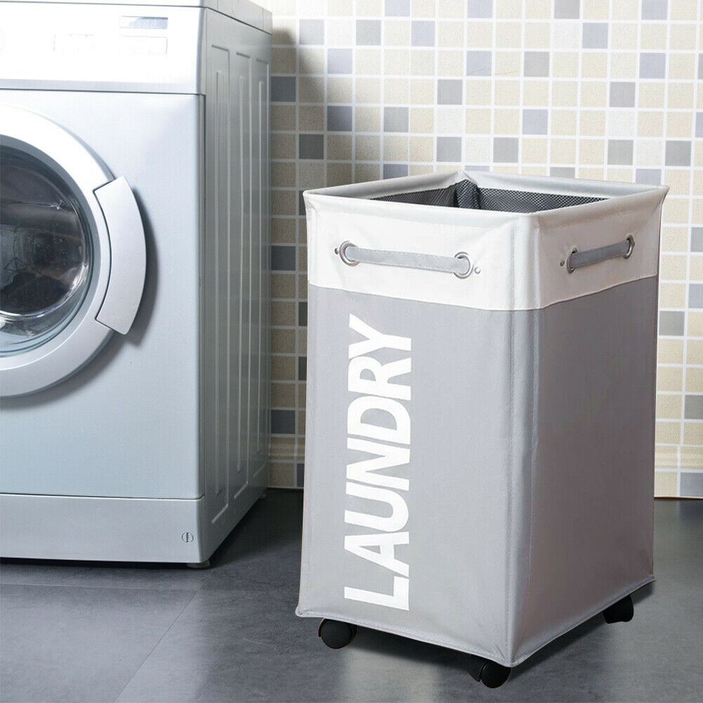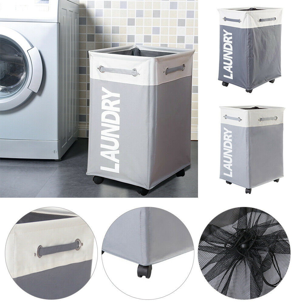 Folding Large Rolling Laundry Basket with Wheel Dirty Clothes Hamper Storage Bin