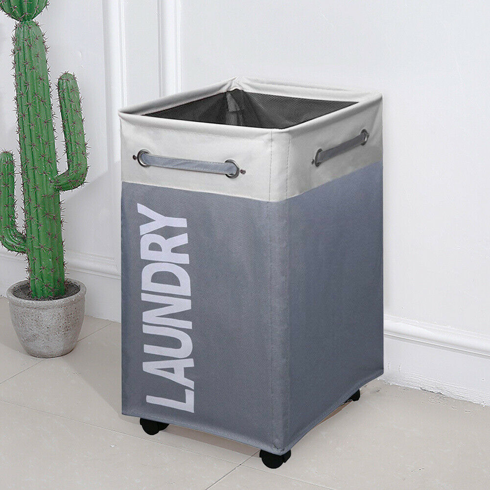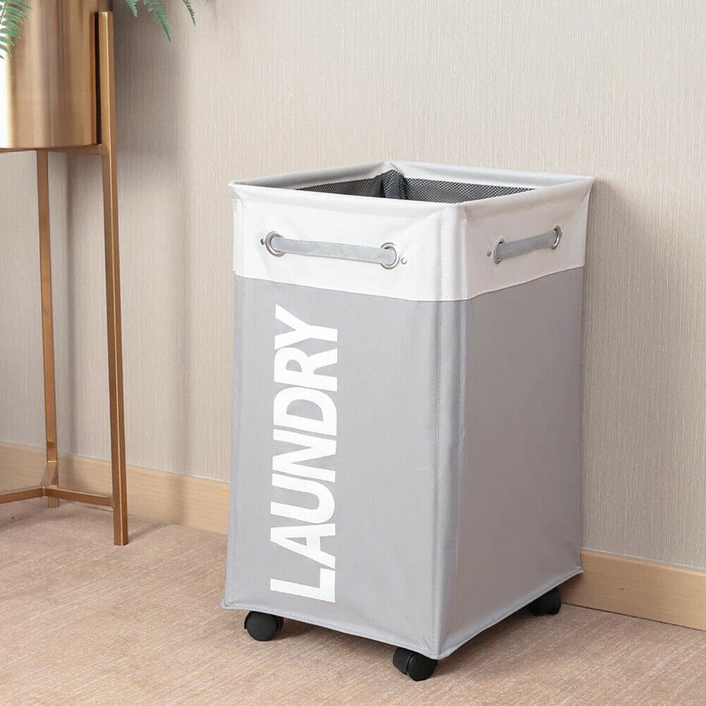 Folding Large Rolling Laundry Basket with Wheel Dirty Clothes Hamper Storage Bin