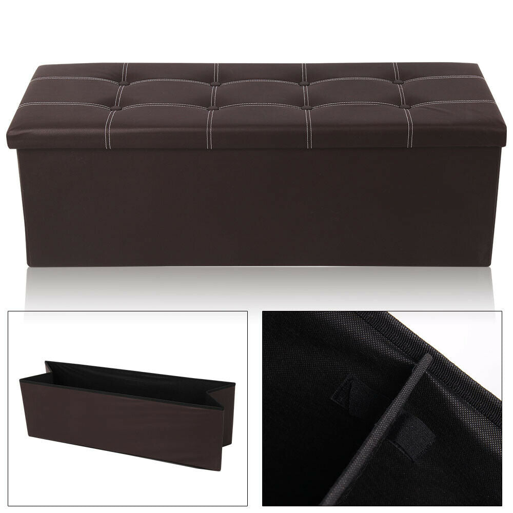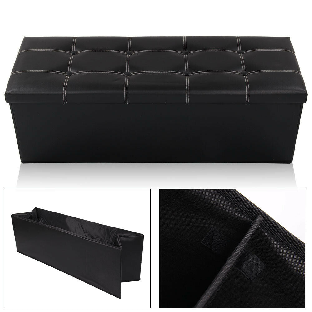 Folding Ottoman Storage Box Pouffe Seat Stool Home Chair Footstool Storage Bench