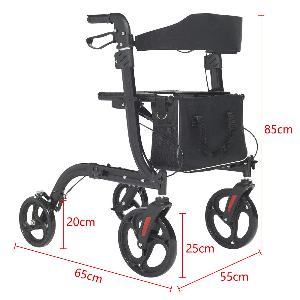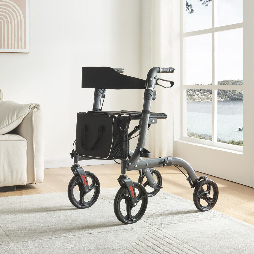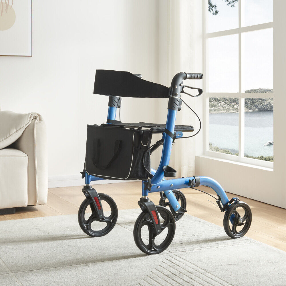 Folding Rollator,Lightweight Walking Aid 4 Wheels Mobility Walker w/ Seat,Break